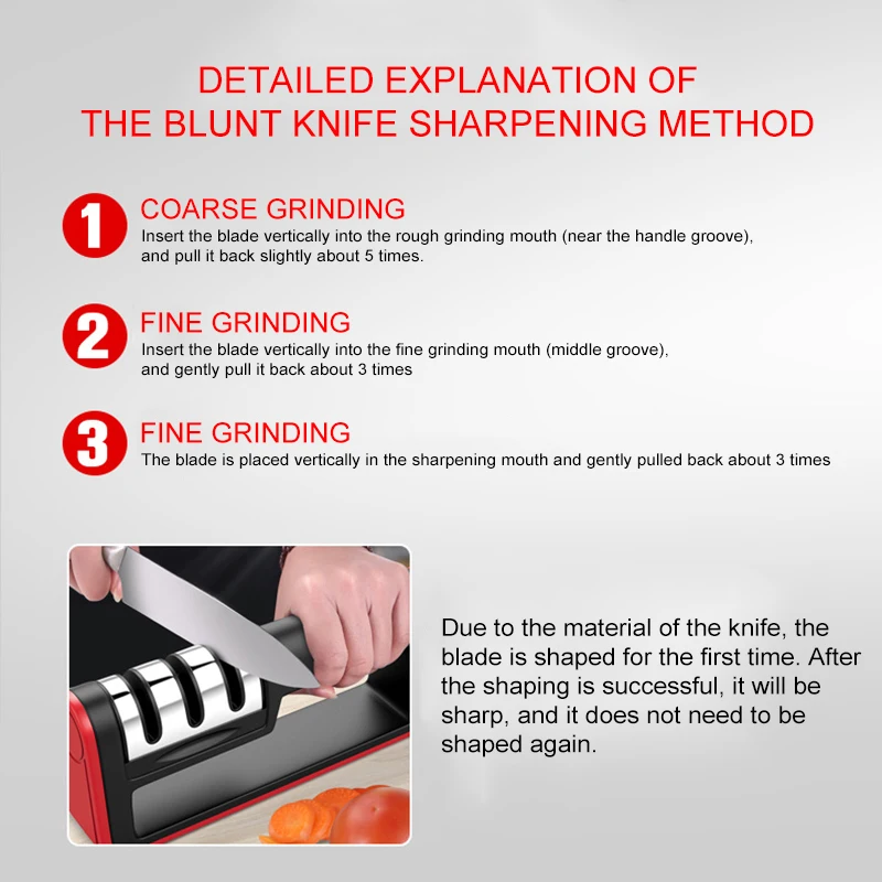 Из-за разницы в материале ножа и угла лезвия, если эффект заточки не является хорошим, рекомендуется продолжать заточку рта, И постепенно увеличивают силу для наблюдения за эффектом (даже более десятка раз можно заточить назад и вперед). Обработка формы, резкость будет достигать после успешного формирования, и в будущем не потребуется никакого дальнейшего формирования