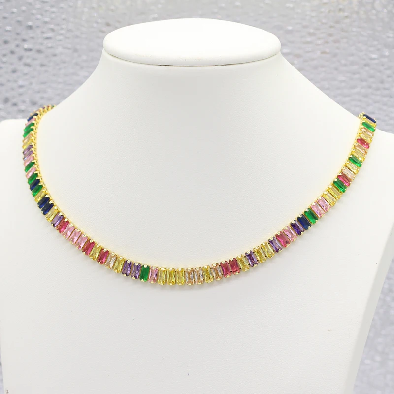 Женское Ожерелье-чокер с разноцветным золотым кубическим цирконием, яркое Радужное хрустальное ожерелье, теннисная цепь с цирконом, яркие ювелирные изделия, Прямая поставка