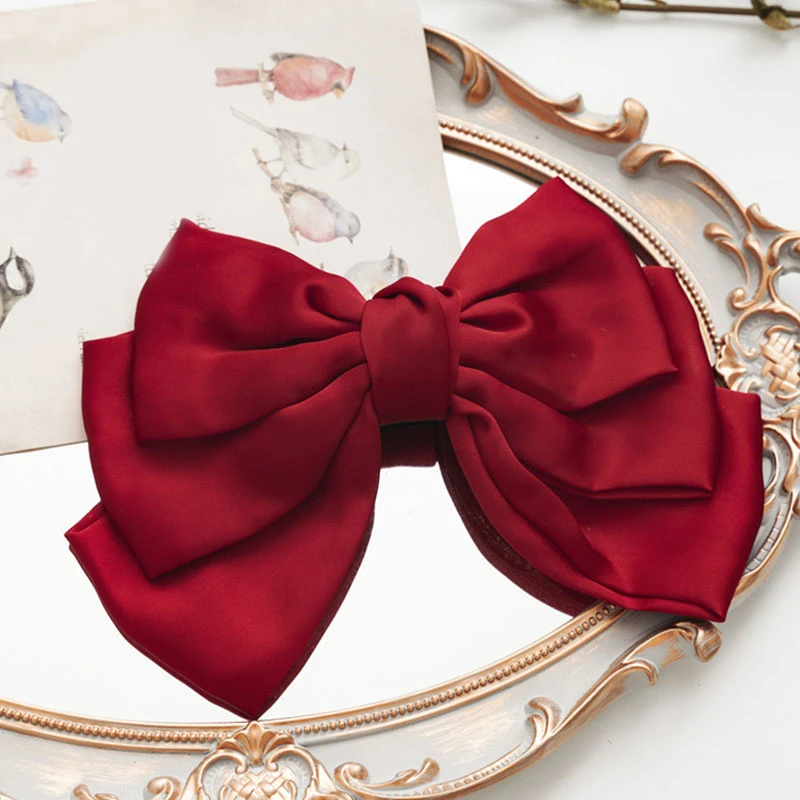 Заколка для волос с большим бантом женская, однотонная заколка с трехслойным атласным бантом, аксессуар на голову