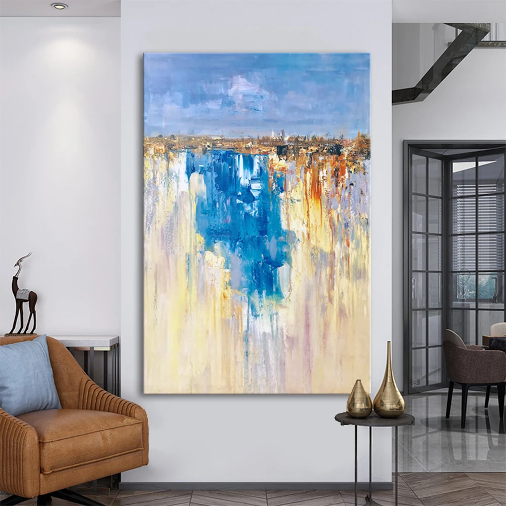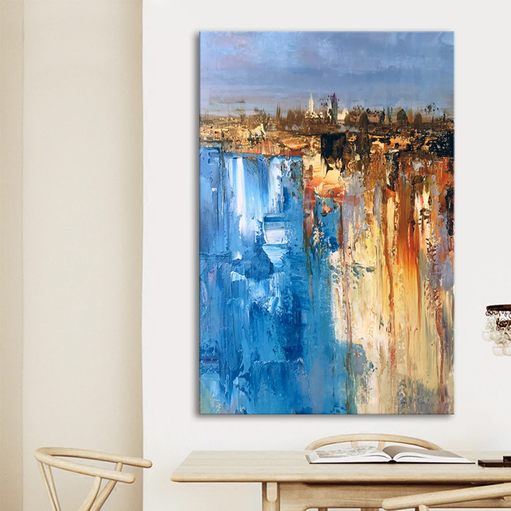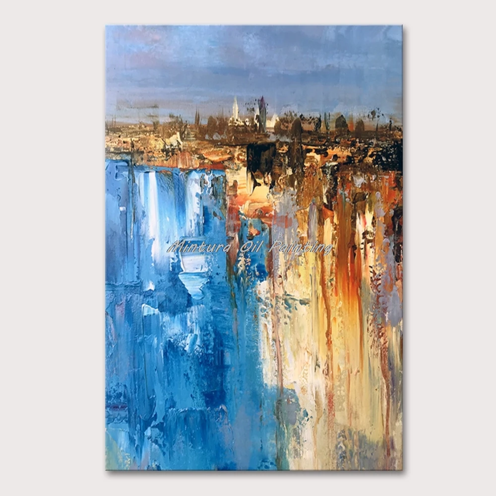 Картина маслом Mintura, ручная роспись, абстракция синего и желтого цветов, Настенная картина для гостиной, домашний декор, без рамки