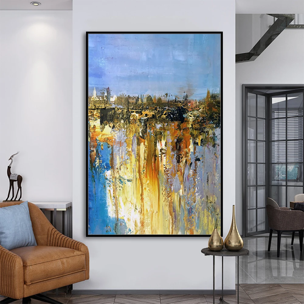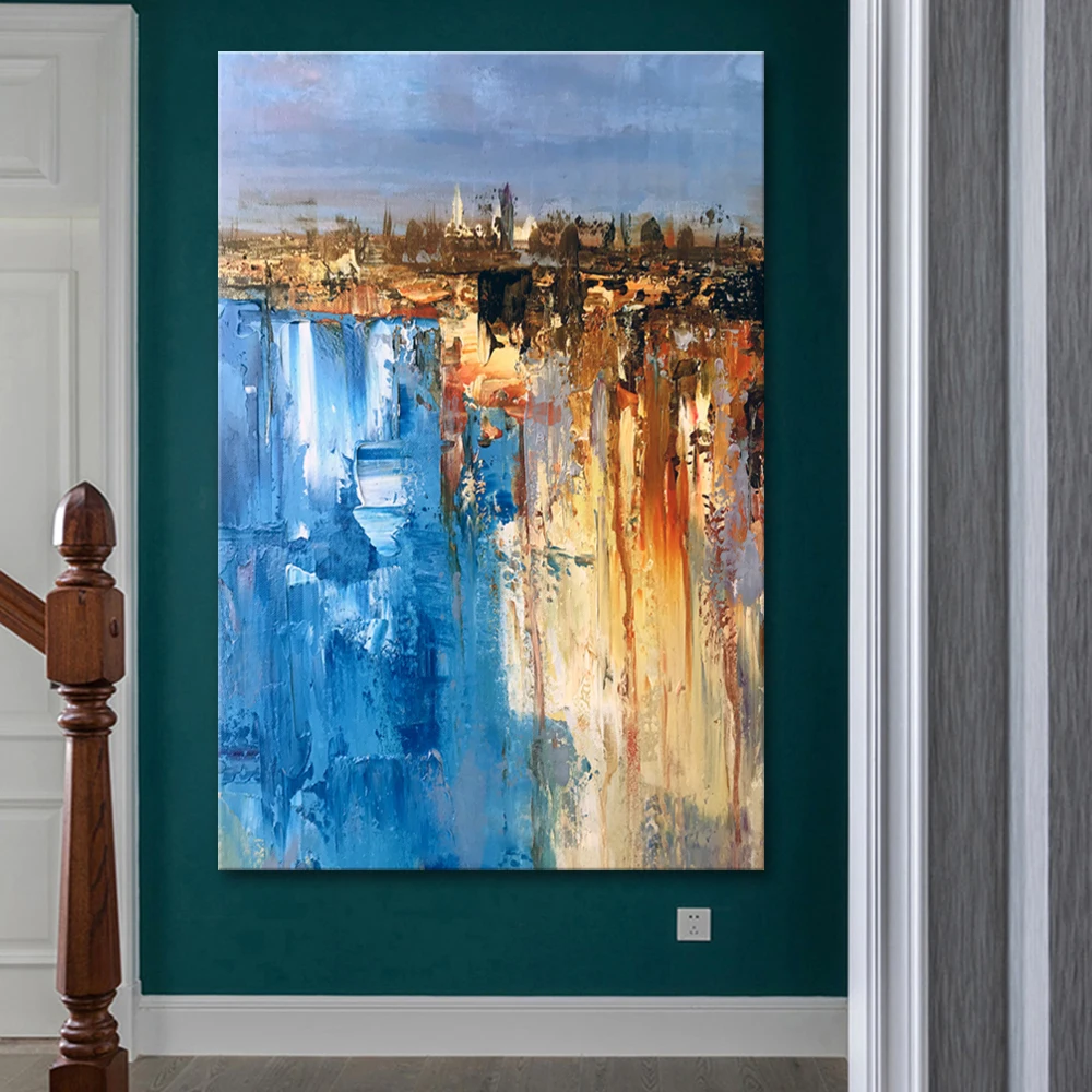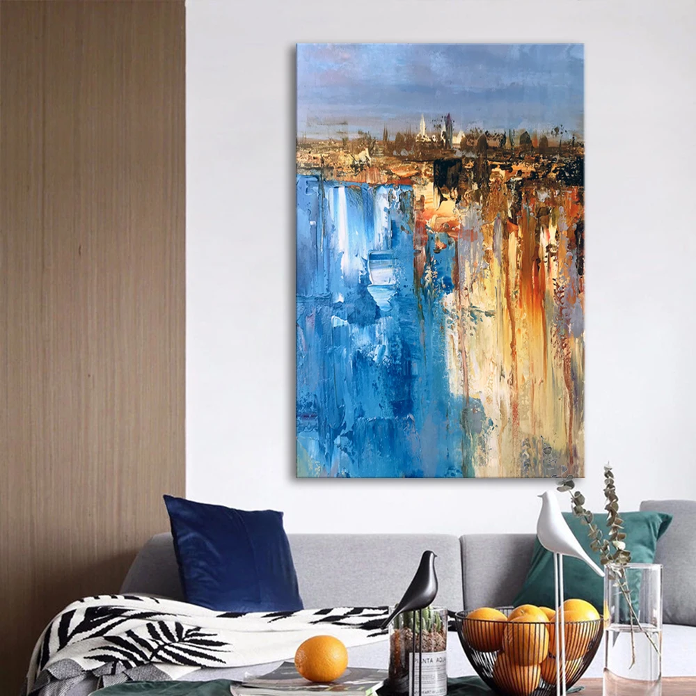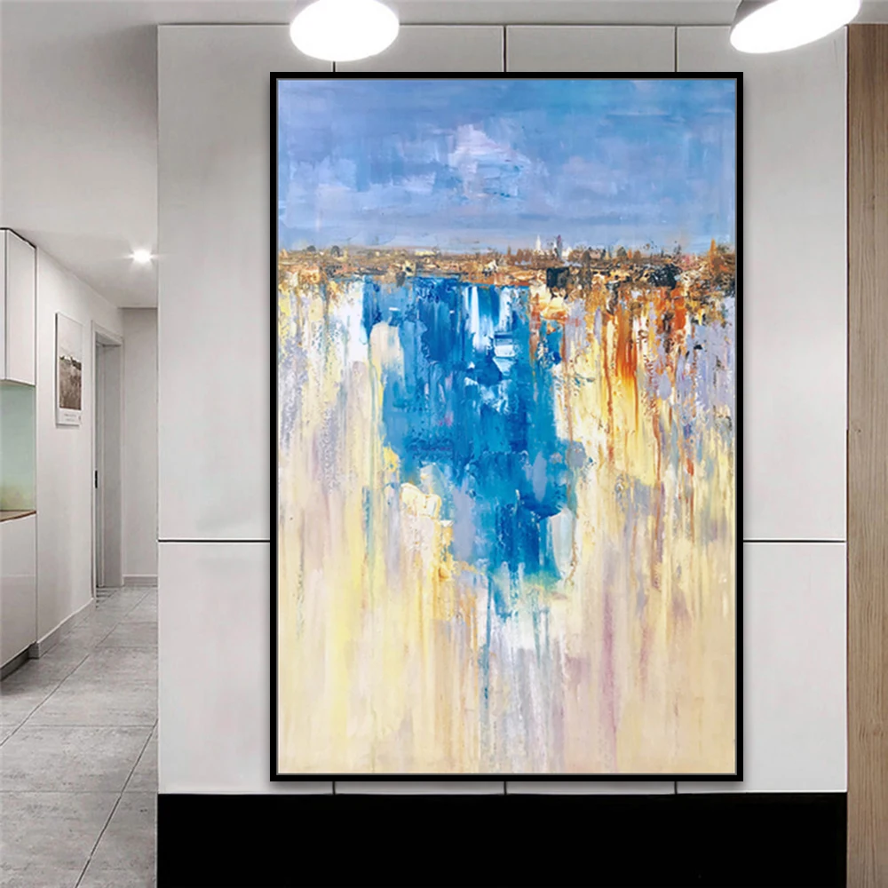 Картина маслом Mintura, ручная роспись, абстракция синего и желтого цветов, Настенная картина для гостиной, домашний декор, без рамки