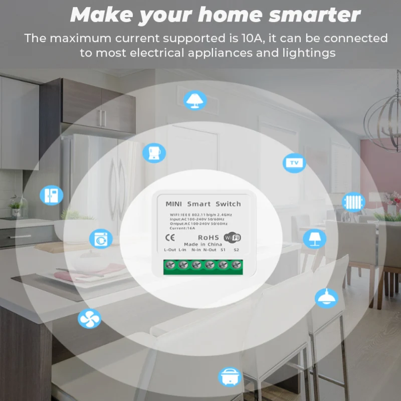 Умный мини-переключатель с поддержкой Wi-Fi, 16 А, 10 А