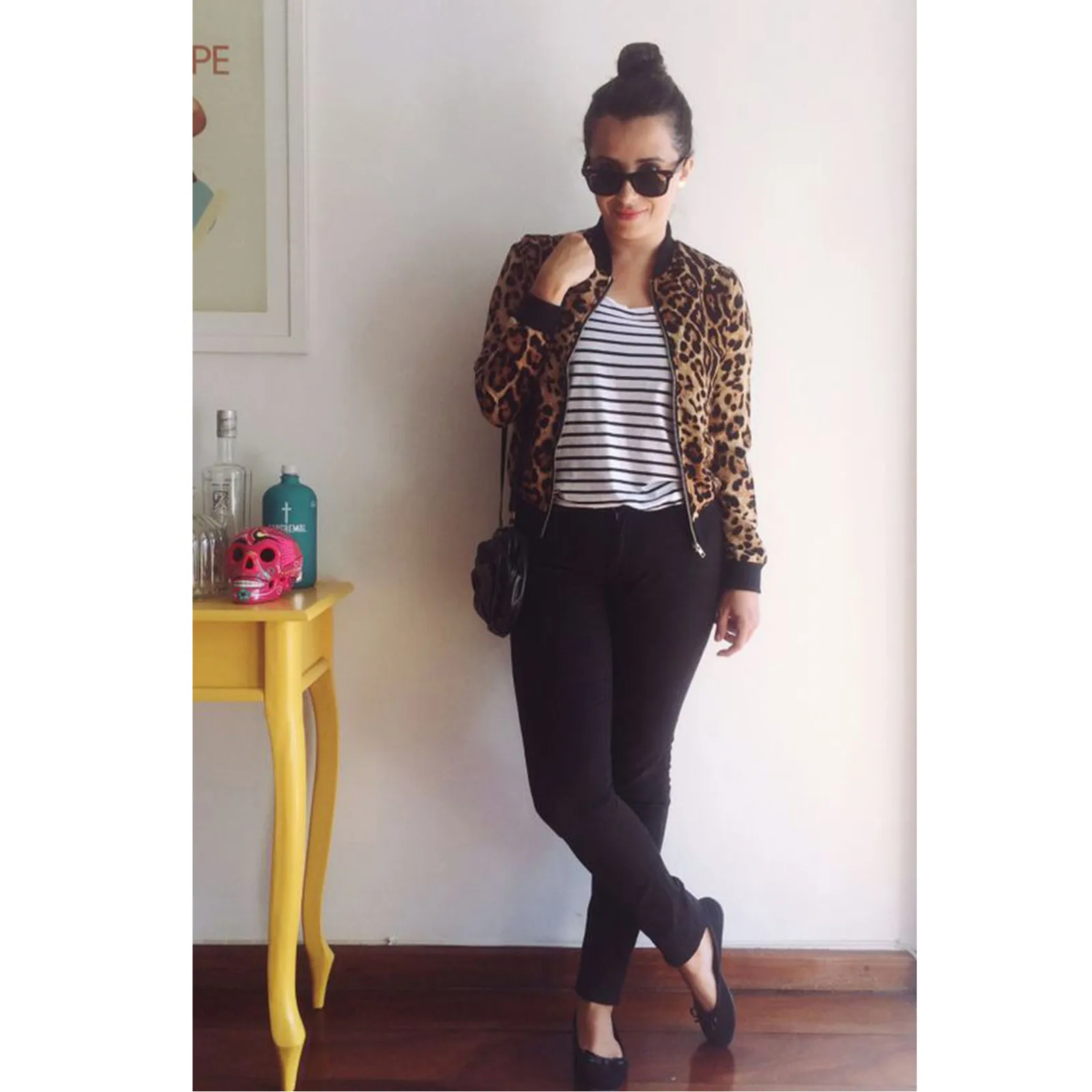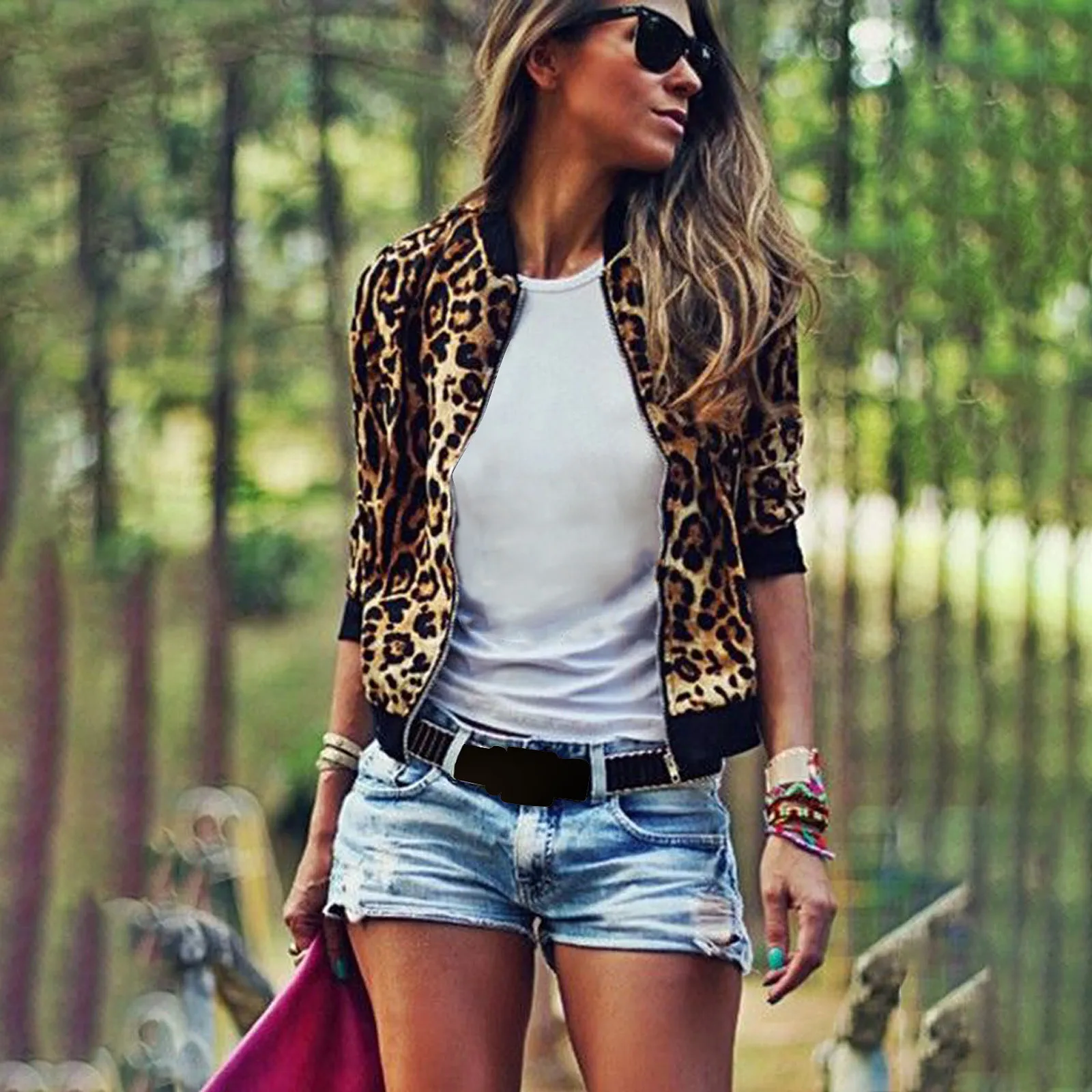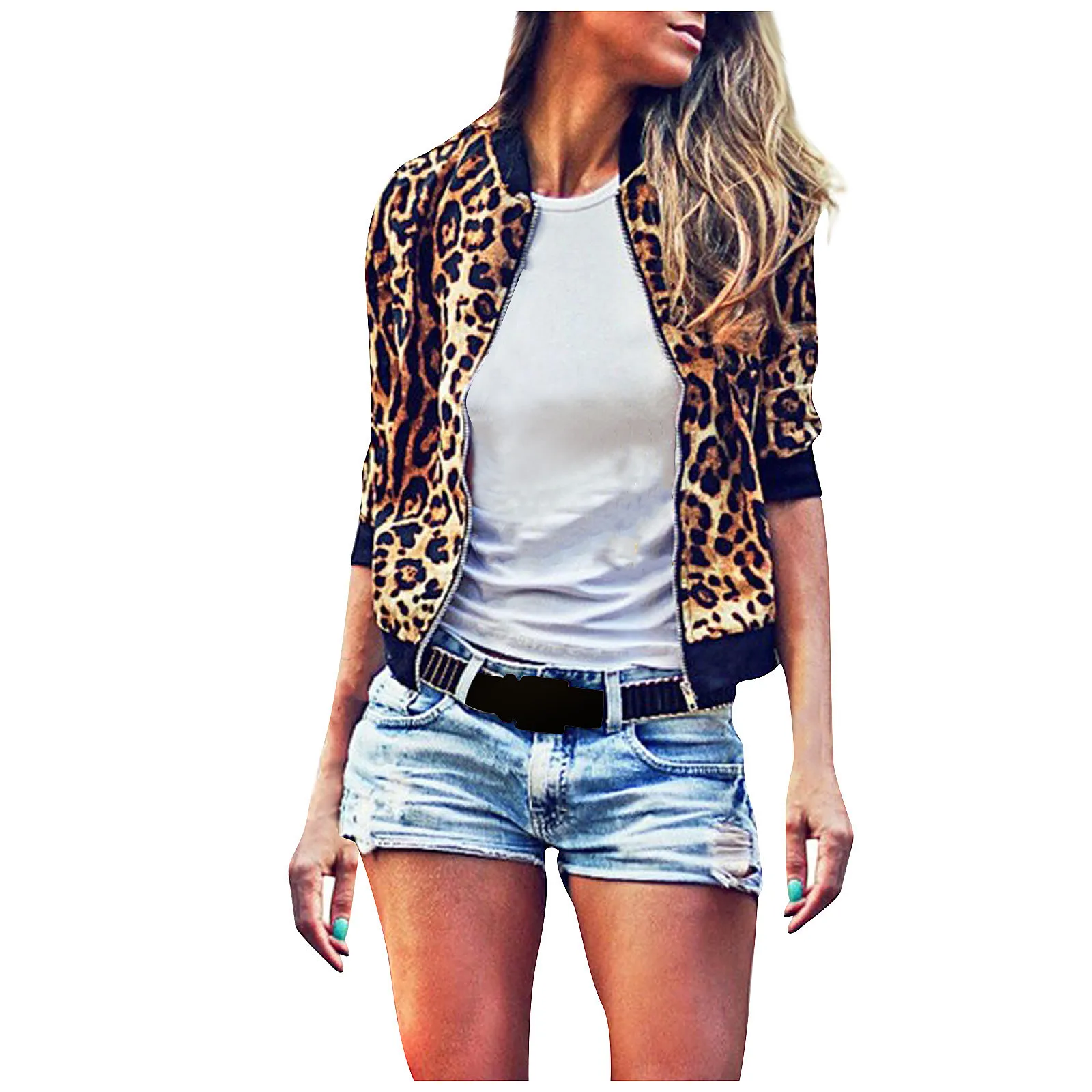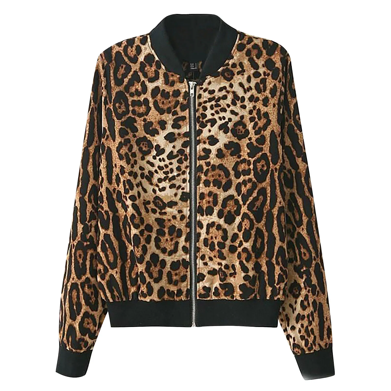 Номер моделиWomen's Fashion Long Sleeve Leopard Print Bomber Zip Jacket Casual Top