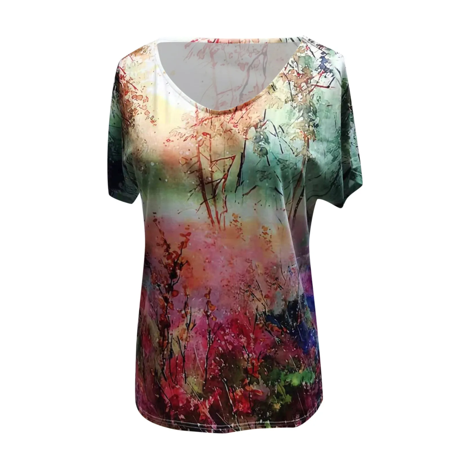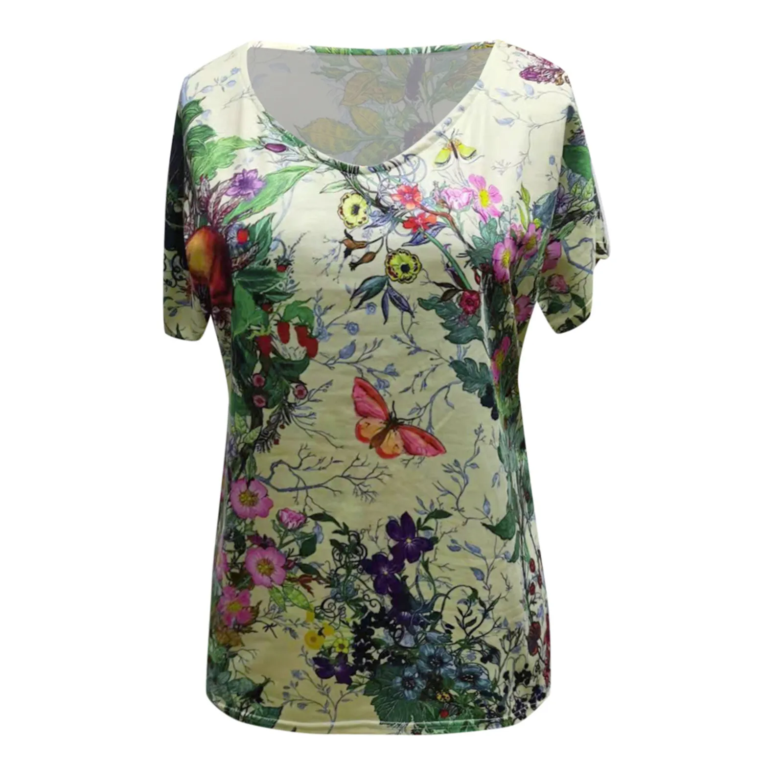 Женская футболка с коротким рукавом, V-образным вырезом и цветочным принтом, большие размеры, лето, S-5xl
