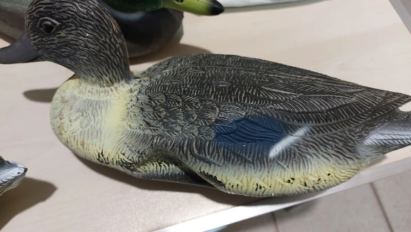 Реалистичная утка декорацииЕго можно положить в поля или поплавать на водеНе только для охоты, но и для привлечения уток в камеру, расстояние измеряется в ногах, а не в ярдахИзготовлено из прочного ударопрочного пластика, декорации невероятно прочныеМатериал: ПЭРазмеры: 36x15x15 см/14x5,9 x 5.9in (в натуральную величину Размеры)Цвет: как показано на фотографии