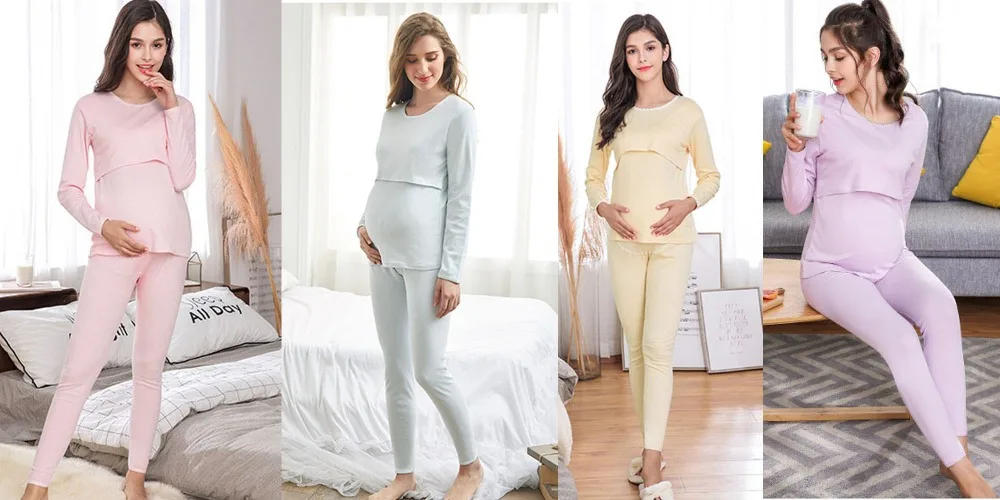 Пижама для кормящих женщин, хлопковая, зимняя, дышащая