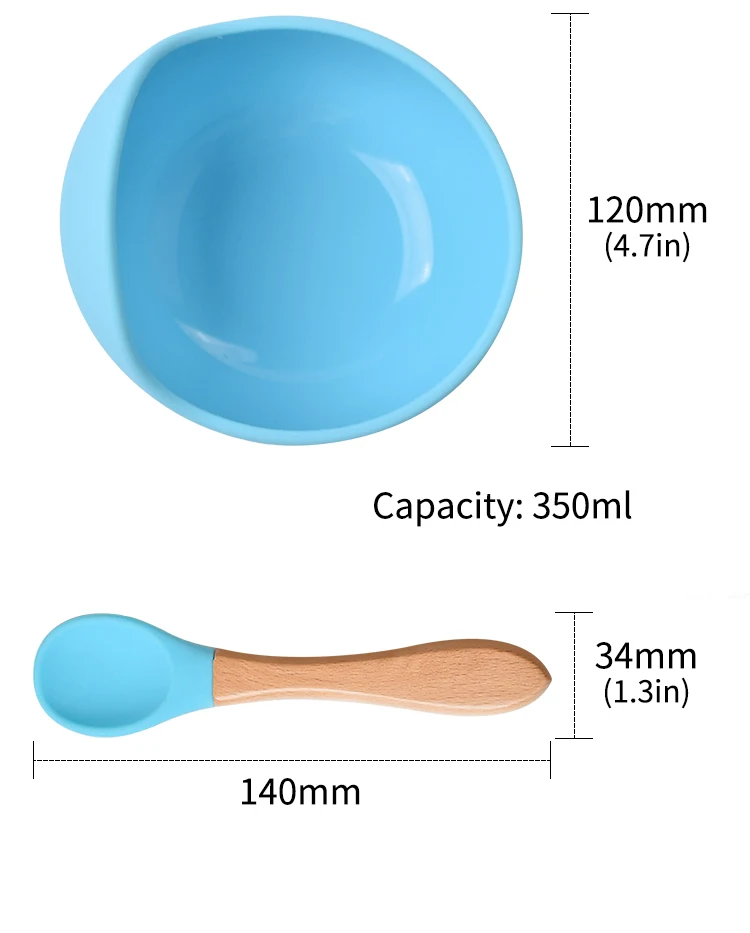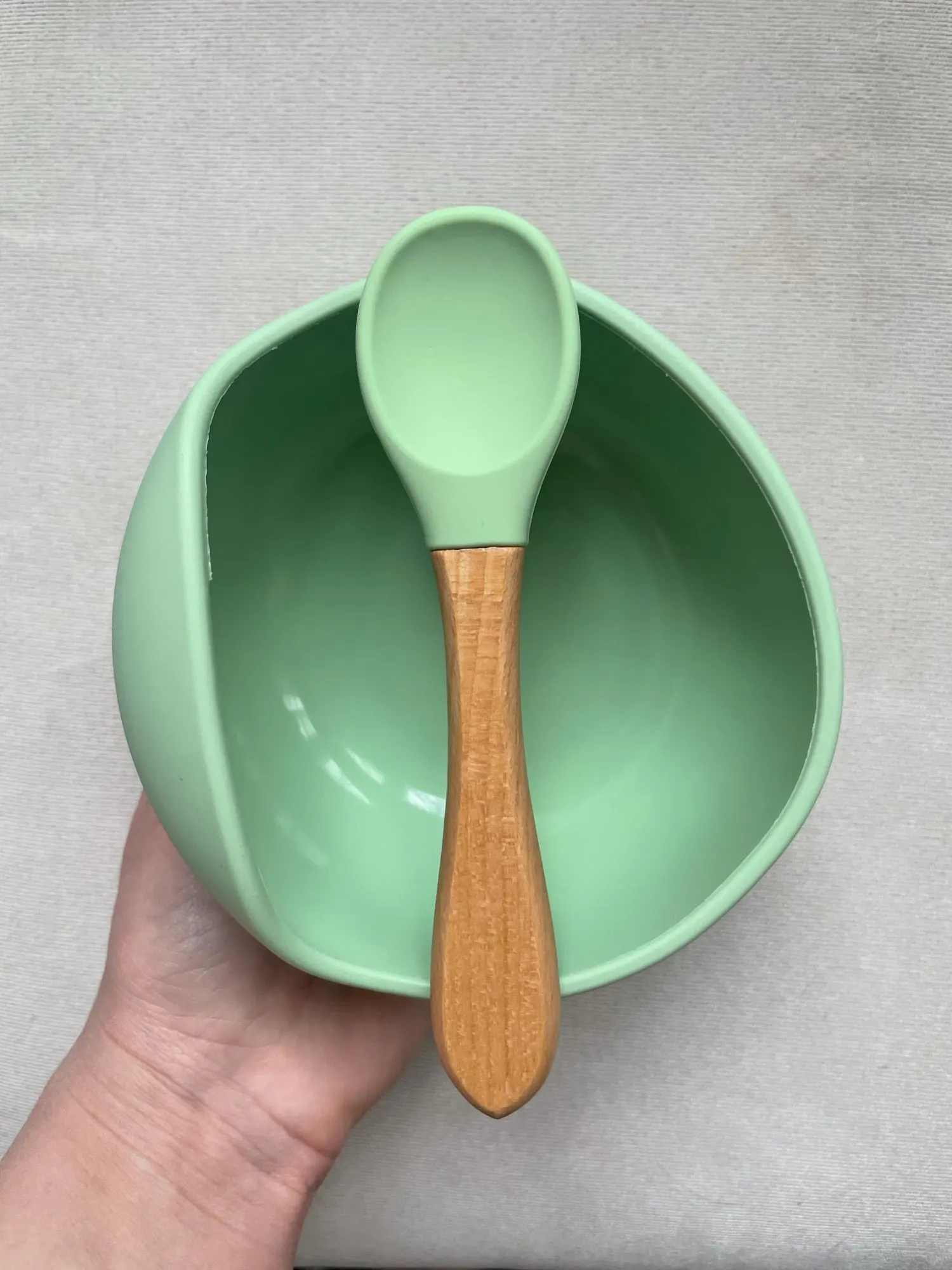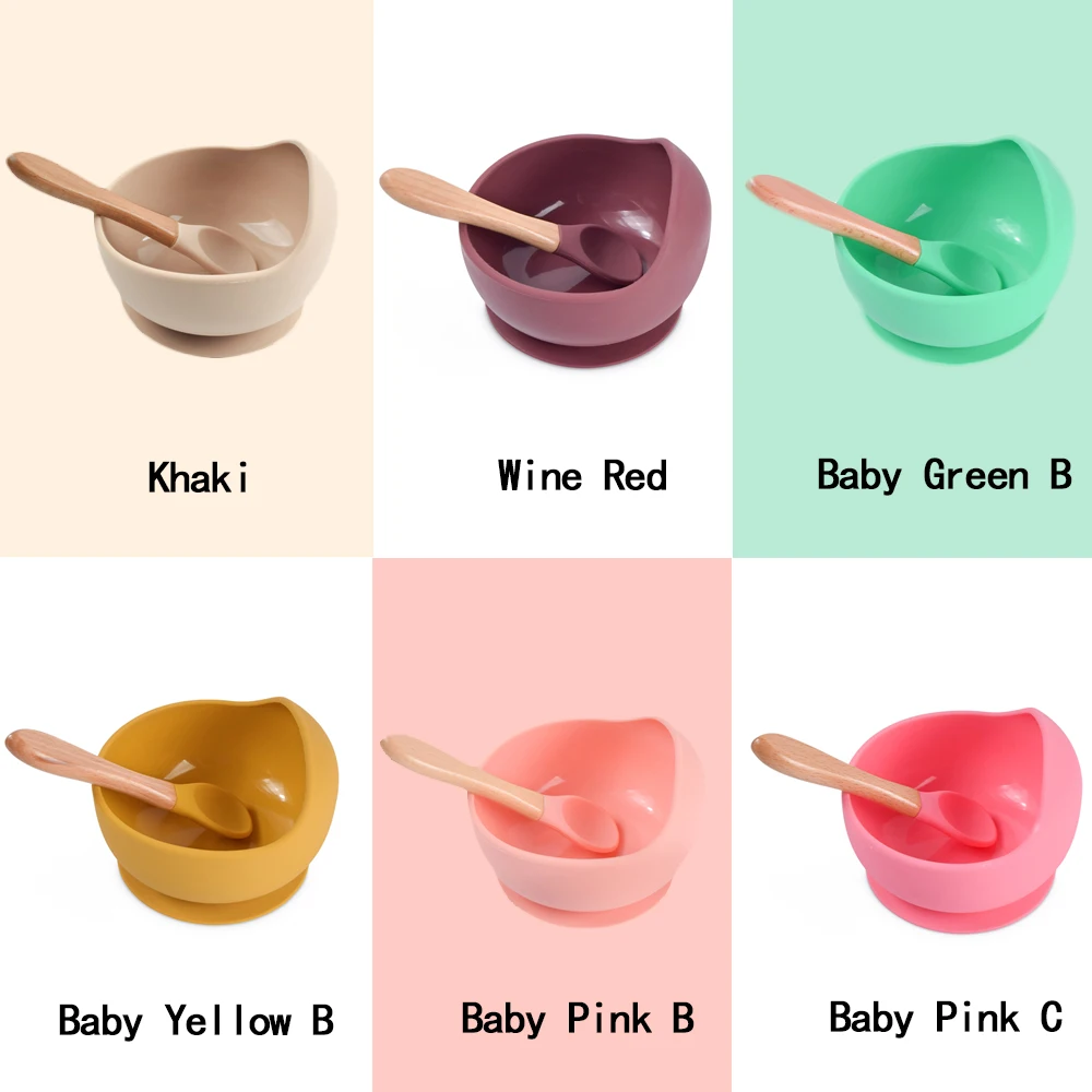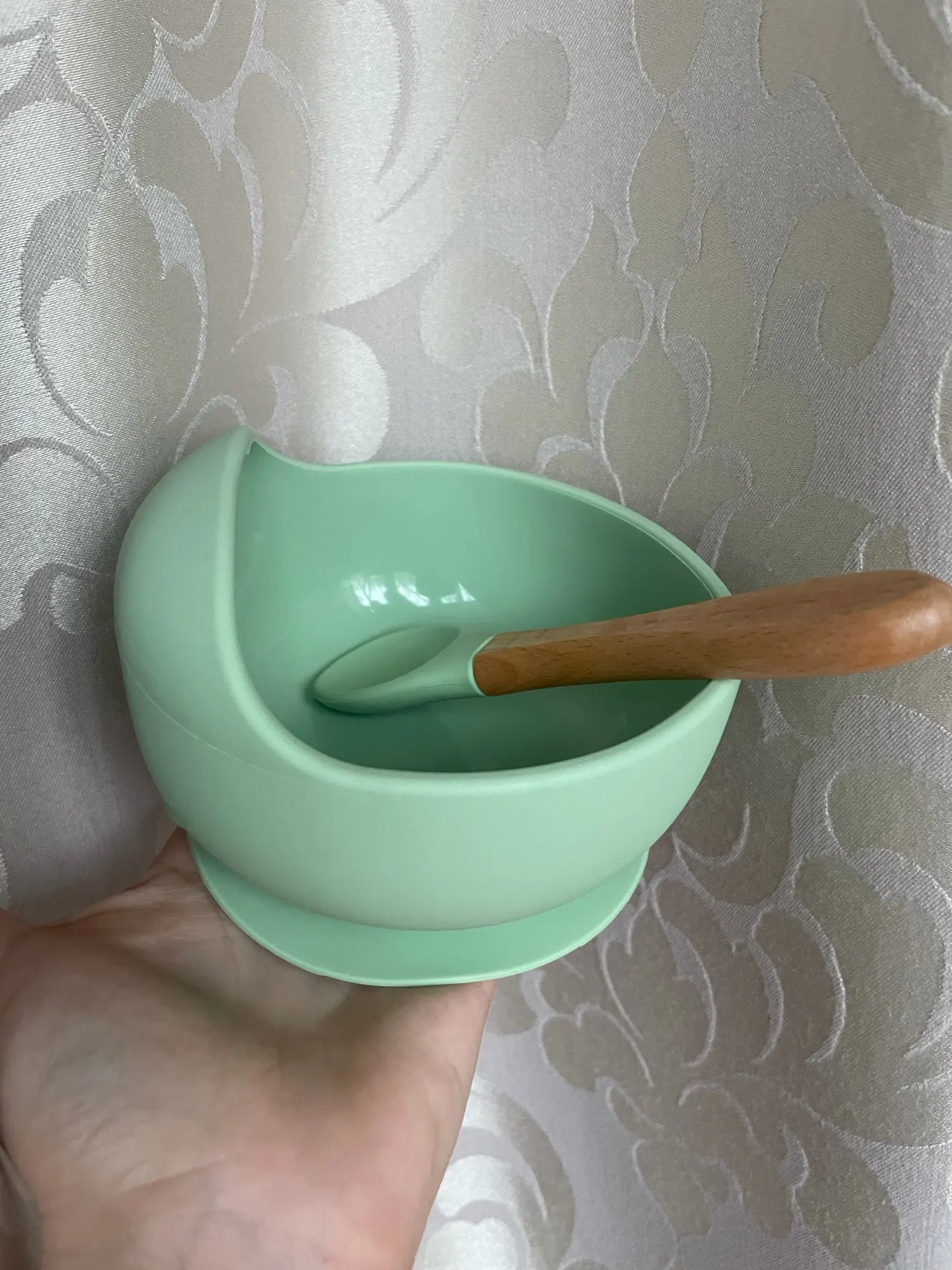 Набор силиконовых чаш для малышей, не содержит бисфенола А, нескользящая чаша, деревянная ручка, силикон ложки, водонепроницаемая посуда для пищевых продуктов