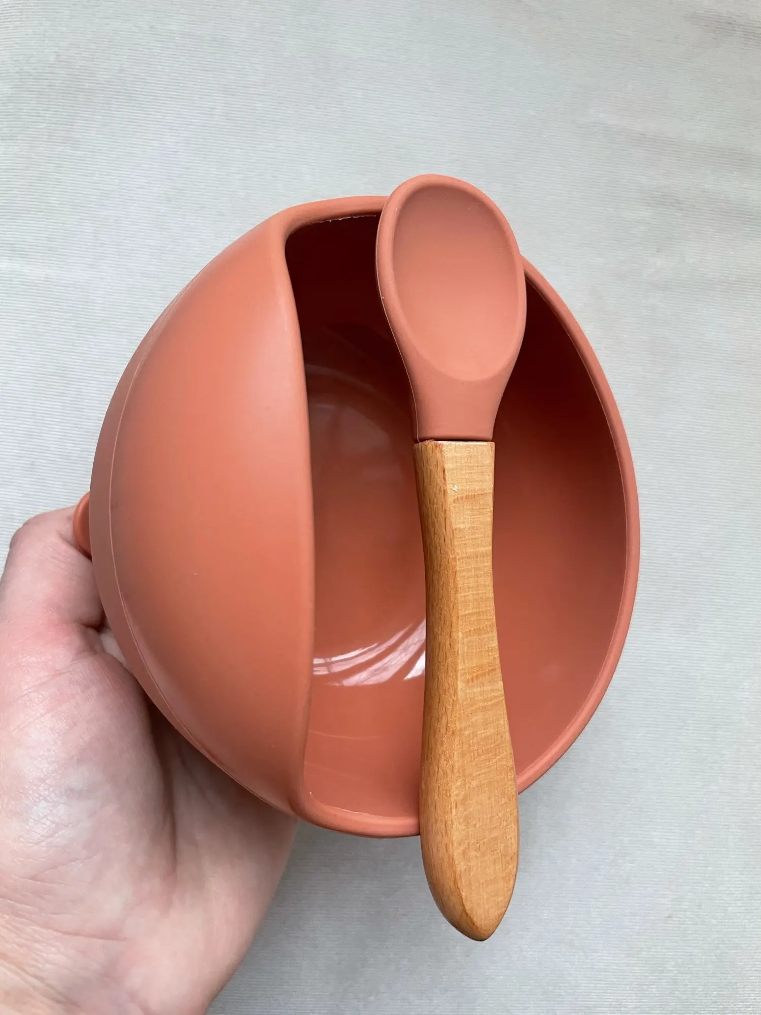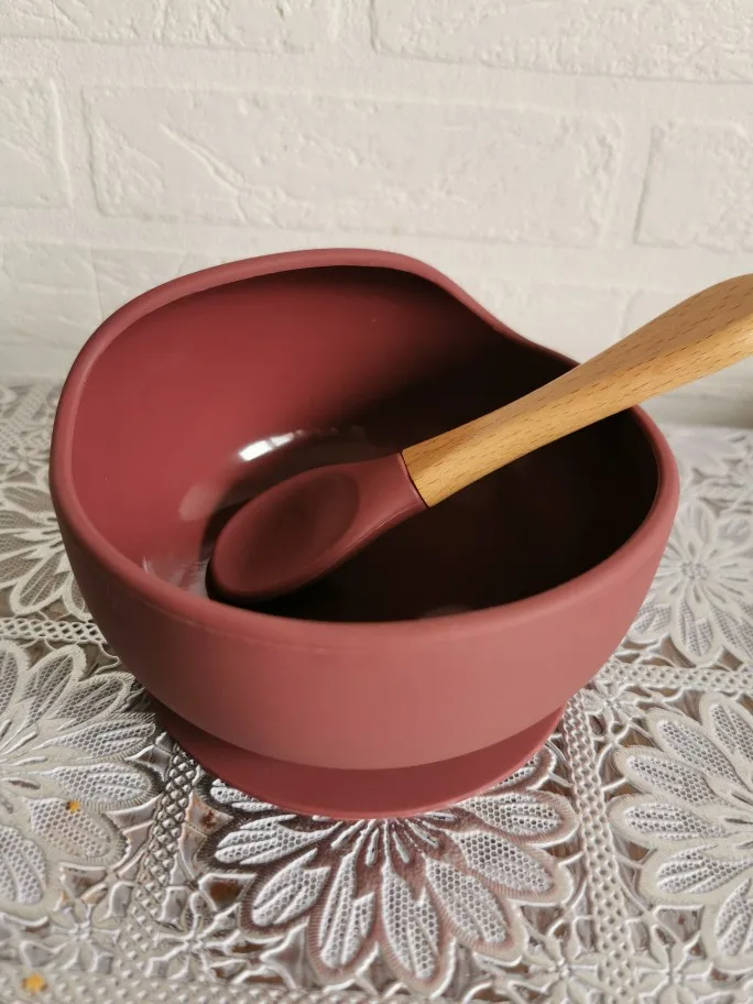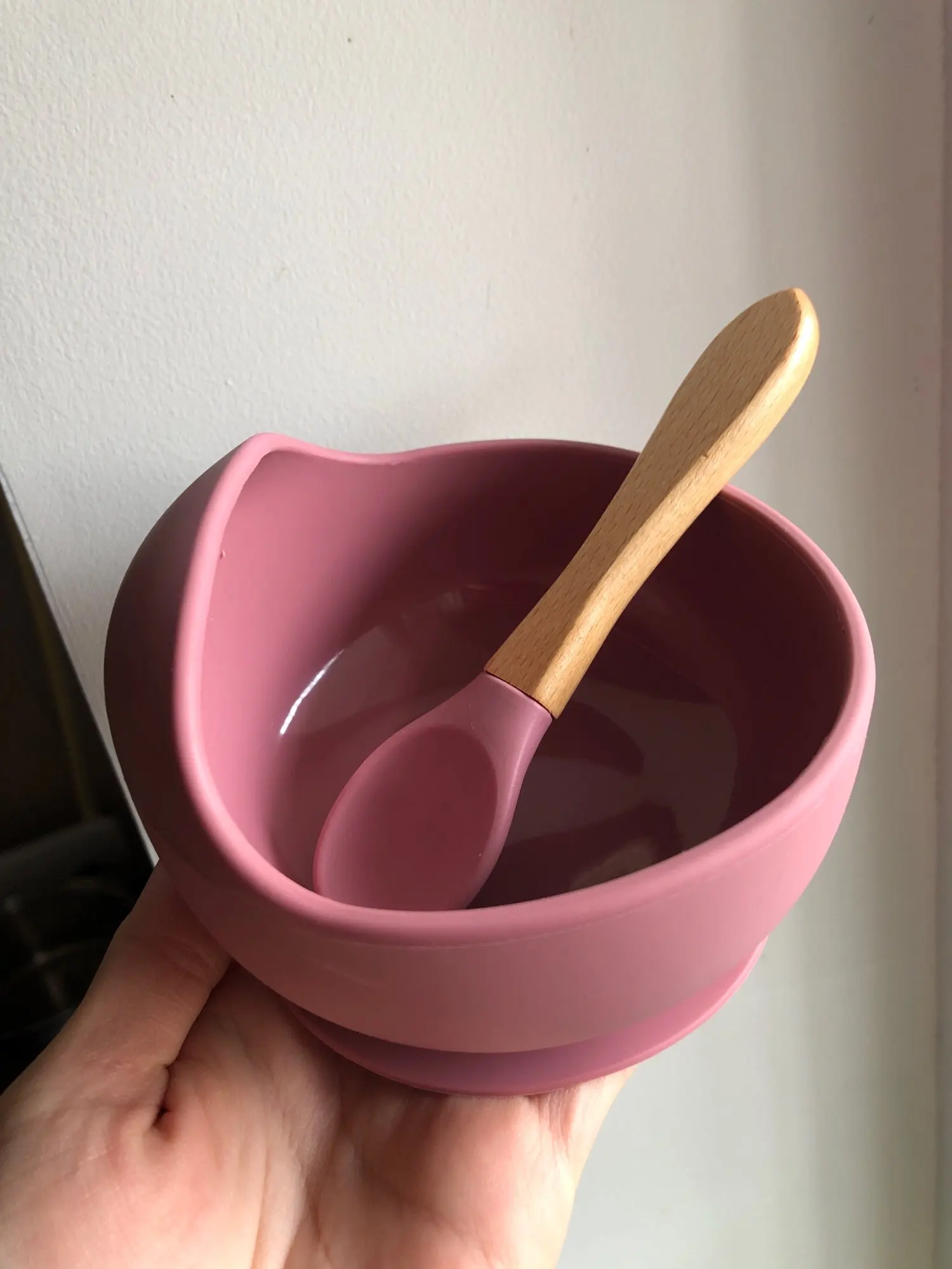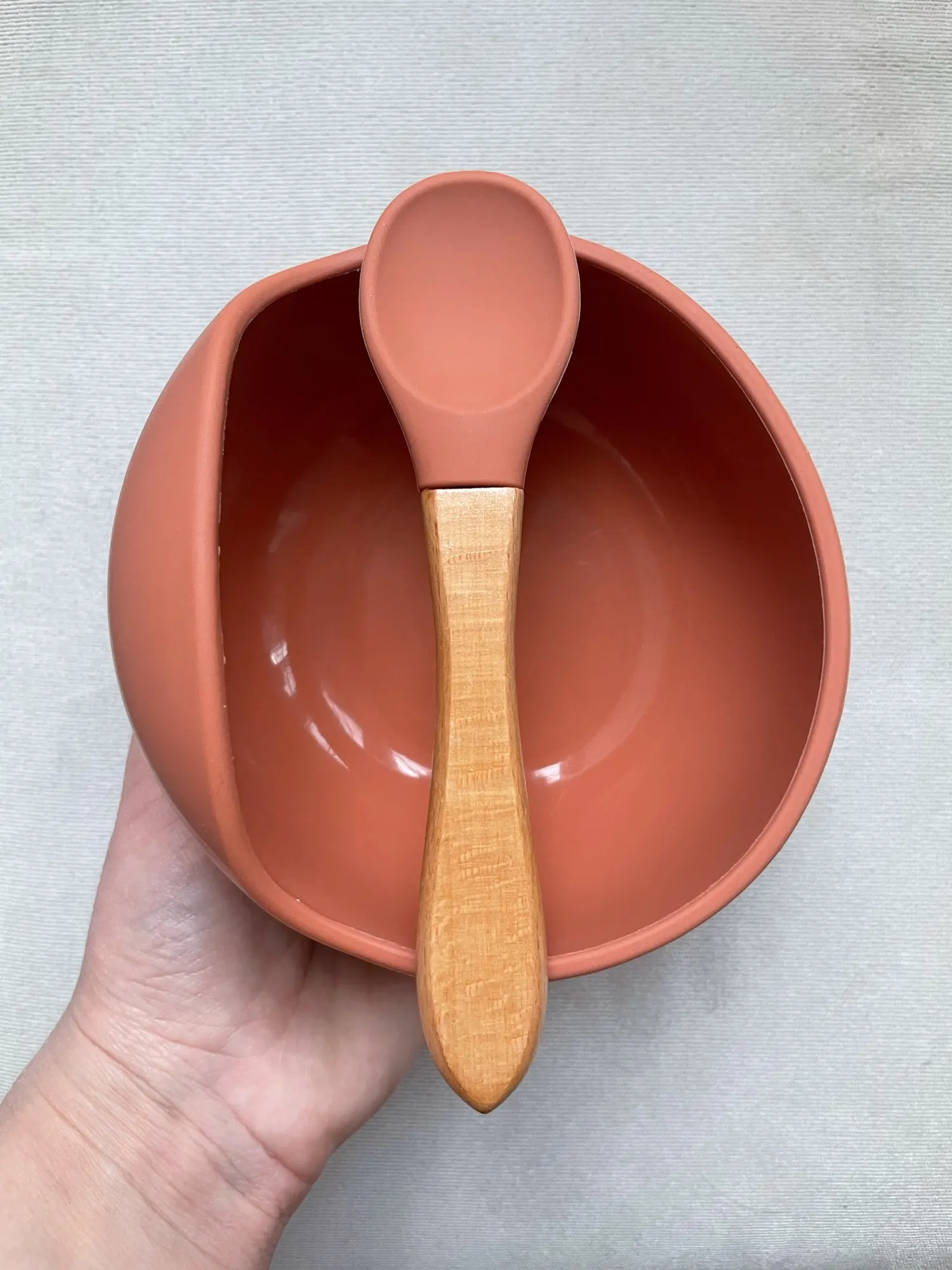 Набор силиконовых чаш для малышей, не содержит бисфенола А, нескользящая чаша, деревянная ручка, силикон ложки, водонепроницаемая посуда для пищевых продуктов