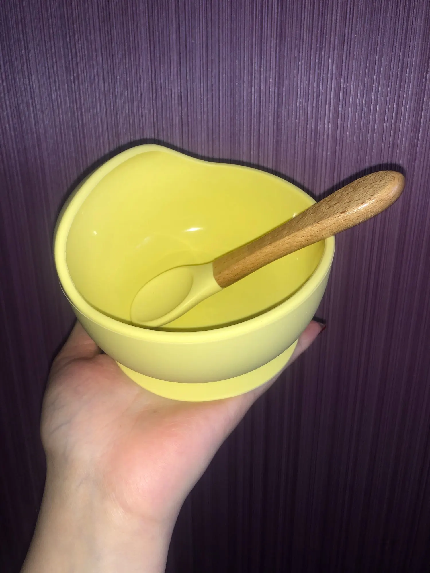 Тарелка как в описании, цвет соответствует, понравилась, крепится к стеклянному и деревянному столу хорошо если чуть смочить дно. Но мне прислали ложку с браком((( деревянная часть соединена с силиконовой не плотно, есть зазор где виден слой клея очень надеюсь, что этот клей безопасен для детей и что силиконовая часть не останется во рту у ребенка, экспериментировать над своими детьми не хочется. обидно(((