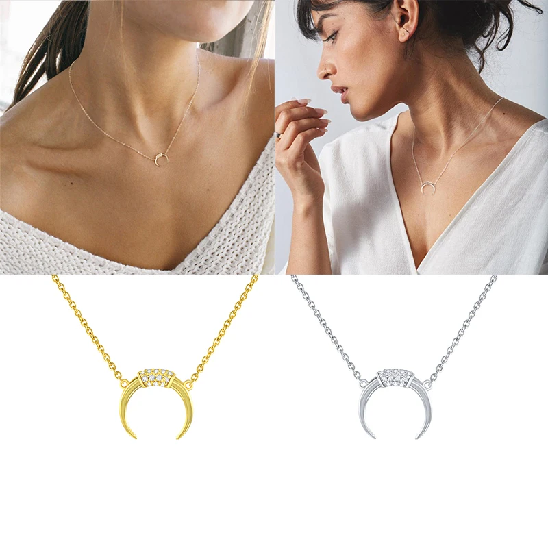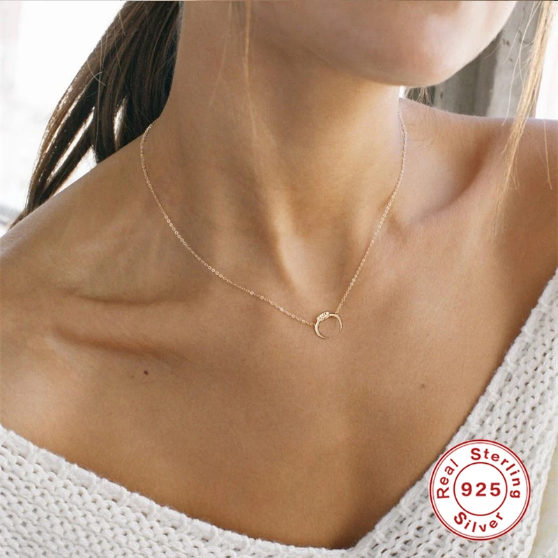 Автоклав 925 стерлингового серебра длинное полумесяц ожерелье для ж...
