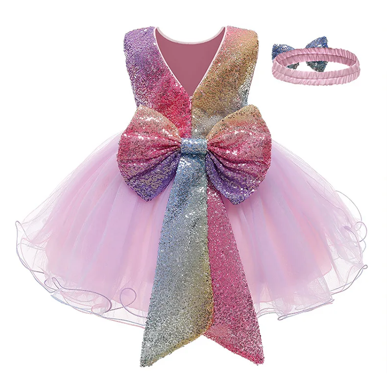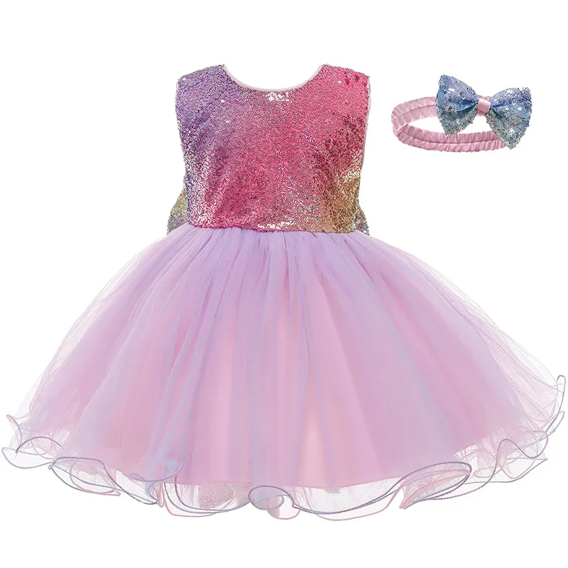 Вечернее платье для маленьких девочек на день рождения, новинка 2021, Сетчатое платье с бантом и блестками для девочек на Рождество, платье с принтом единорога, праздничные платья