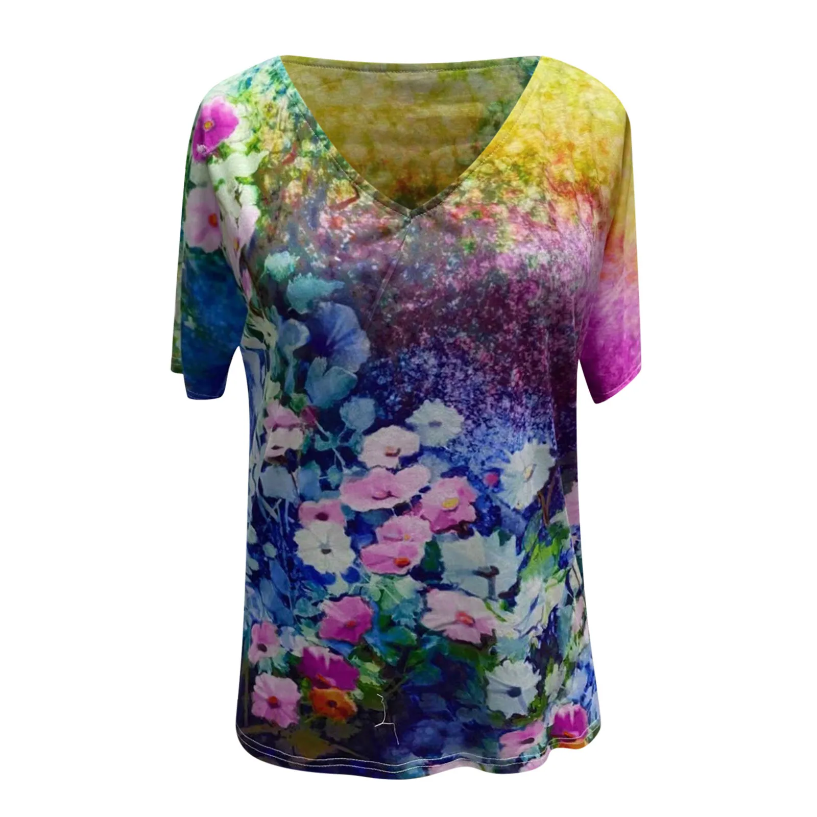 Женская футболка с коротким рукавом, принтом в стиле Харадзюку, с V-образным вырезом, лето размера плюс, 2021
