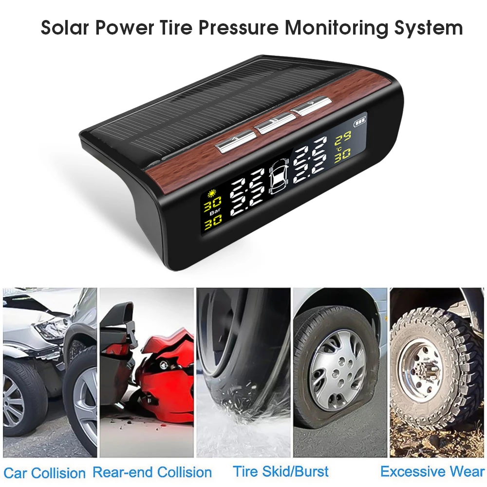 Автомобильная TPMS система контроля давления в шинах солнечное зарядное устройство с 4 внешними датчиками ЖК-дисплей автоматическая система охранной сигнализации s