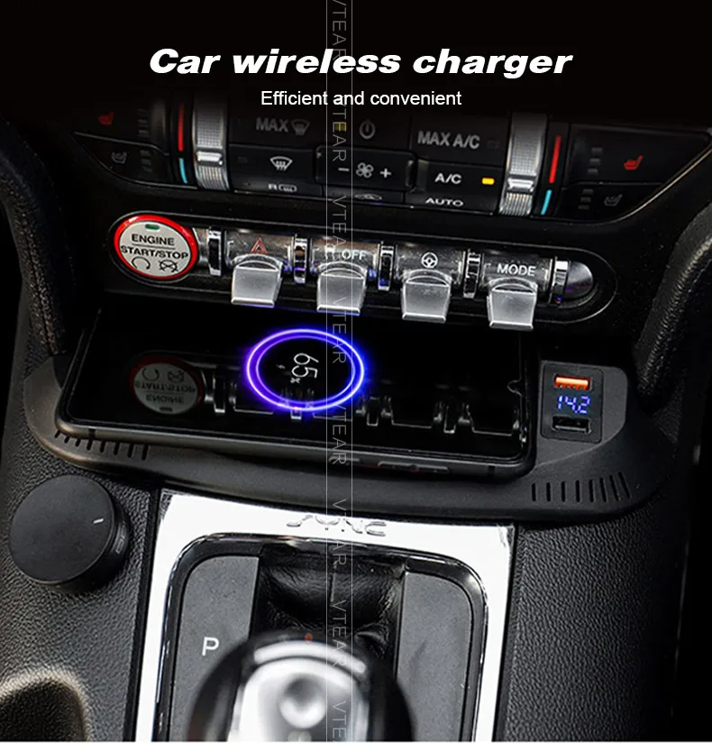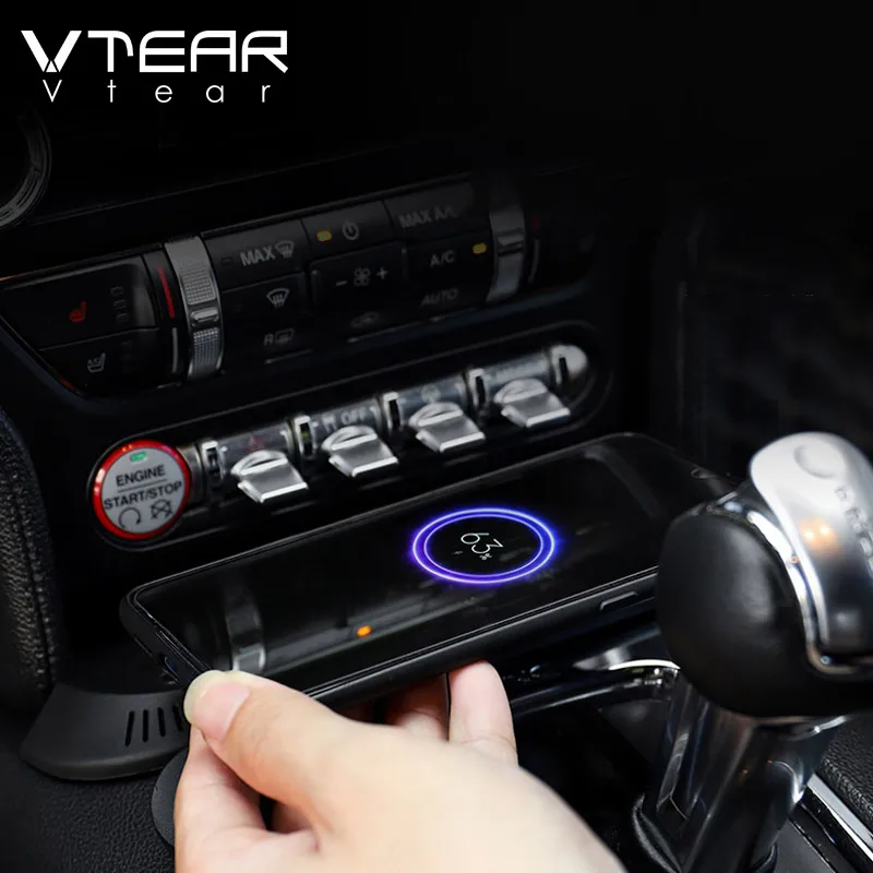 Автомобильное Qi Беспроводное зарядное устройство для Ford Mustang Gt аксессуары 2016-2021 модификация интерьера Быстрая зарядка для телефона автомобильные продукты