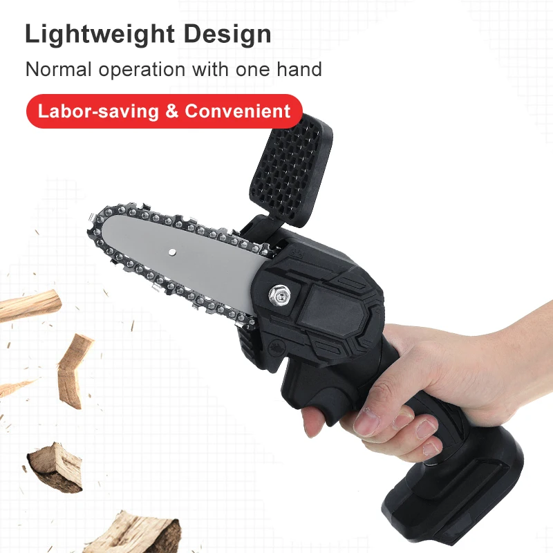 Посылка включает в себя:1 Электрическая цепная пилаАккумулятор-1 шт.Зарядное устройство-1 шт.1 х гаечный ключ1 отверткаХарактеристики:Название: электрическая бензопилаМатериал: АБС + металлБатарея: литиевая Батарея, 24V, 2500 мА · ч (входит в комплект)Мощность: 800 ВтДлина направляющей пластины: 4 дюймаРазмер резки: <100 ммОсобенности:Перезаряжаемая Электрическая цепная пила, светильник и портативный, длительный срок службы батареи, без повреждений коры.Светильник вес тела, светильник и удобный, светильник вес конструкции, долгое время хранения и не устают руки.Щеточный двигатель из чистой меди, высокая мощность, быстрая резка, повышение эффективности.Практичная, быстрая скорость, низкое энергопотребление.Переключатель отличного качества, быстрая и медленная регулировка, плавное изменение скорости.Интеллектуальная плата управления цепью, защита от перегрузки, для удовлетворения ваших различных потребностей в конструкции.Маленький размер, можно держать одной рукой.Высококачественная направляющая цепь, глубокая закалка, более износостойкая, гладкая резка.Примечание:1. Допускается погрешность в 1-2 см из-за ручного измерения.2. Цвета могут отличаться, так как на дисплее разница, пожалуйста, поймите.3. Мы отправим вам адаптер в соответствии с вашей страной.