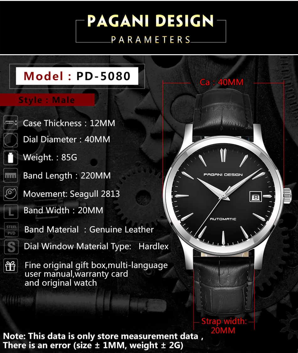 Часы PAGANI DESIGN Мужские механические, Классические деловые водон...