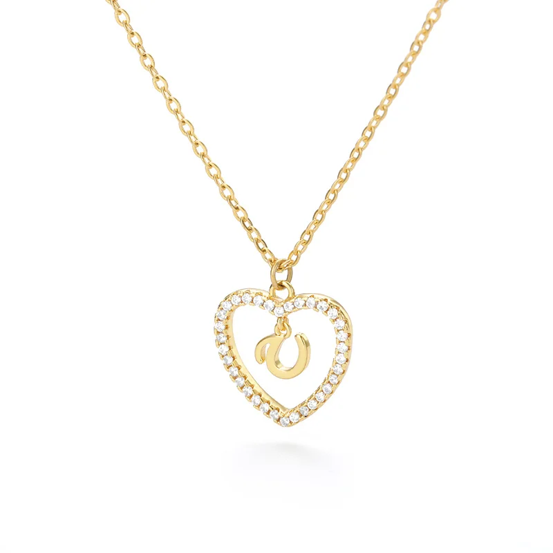 Милое ожерелье в форме сердца для женщин и мужчин, золотая цепочка с цирконом, буквы инициала, женское ожерелье с кулоном на шею, Рождественская бижутерия, подарок BFF 2020
