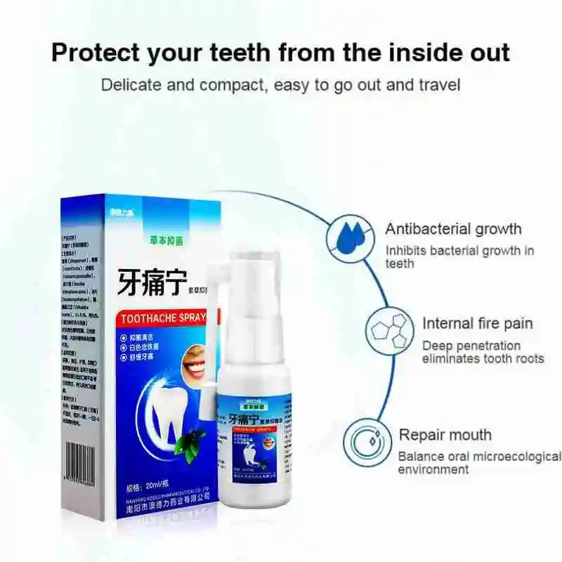 Бактериостаз, спрей для зубной боли, 20 мл, для удаления пародонтита, чистящие полости, черви, зубы, уход за зубами, облегчение боли S S0V2