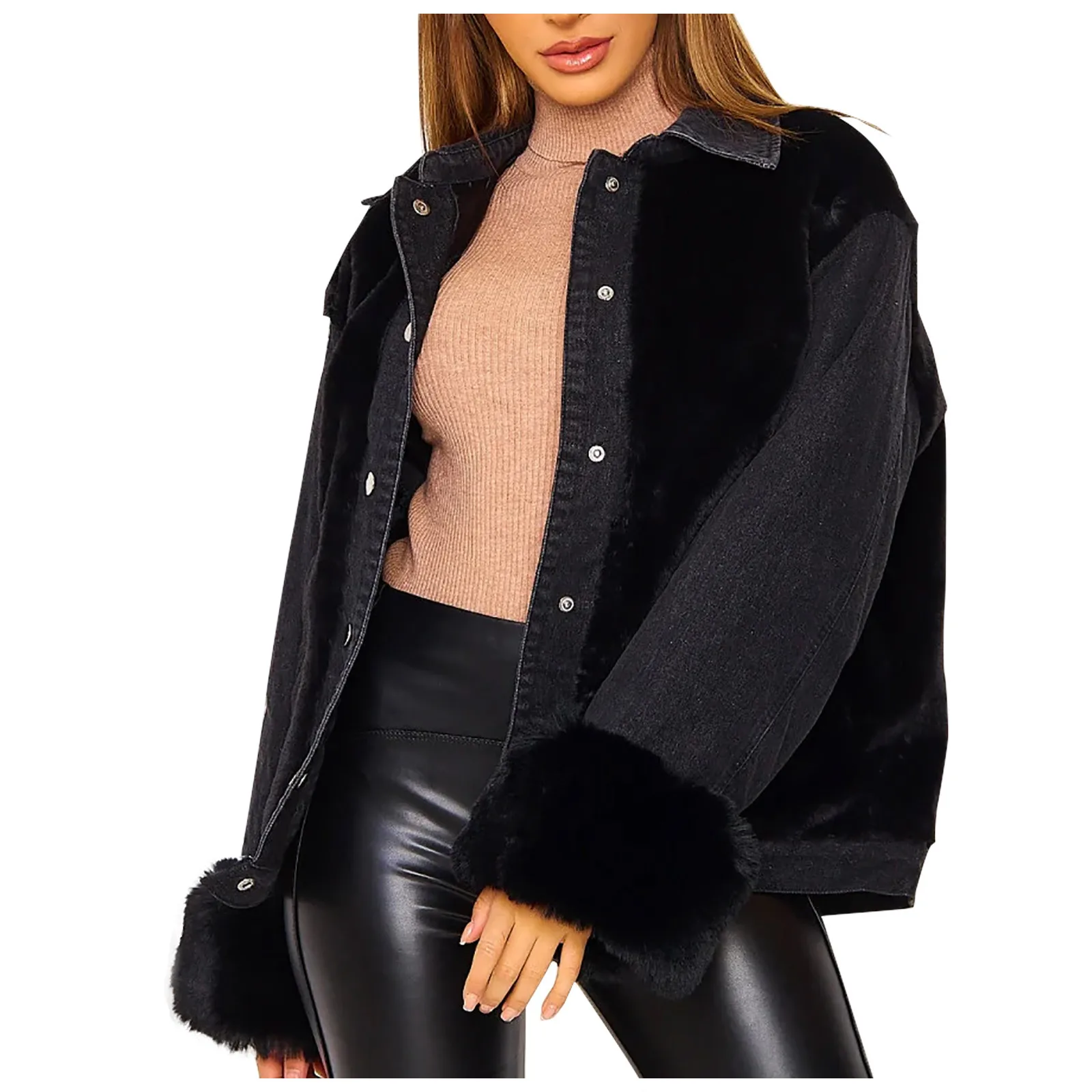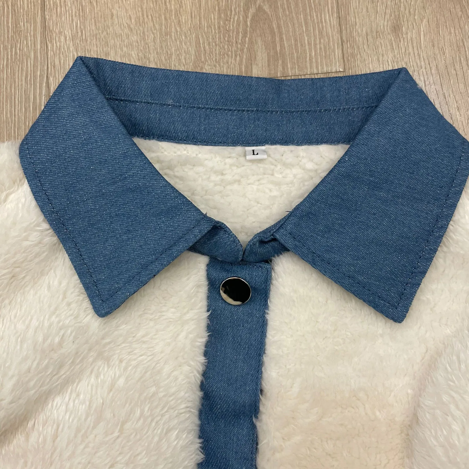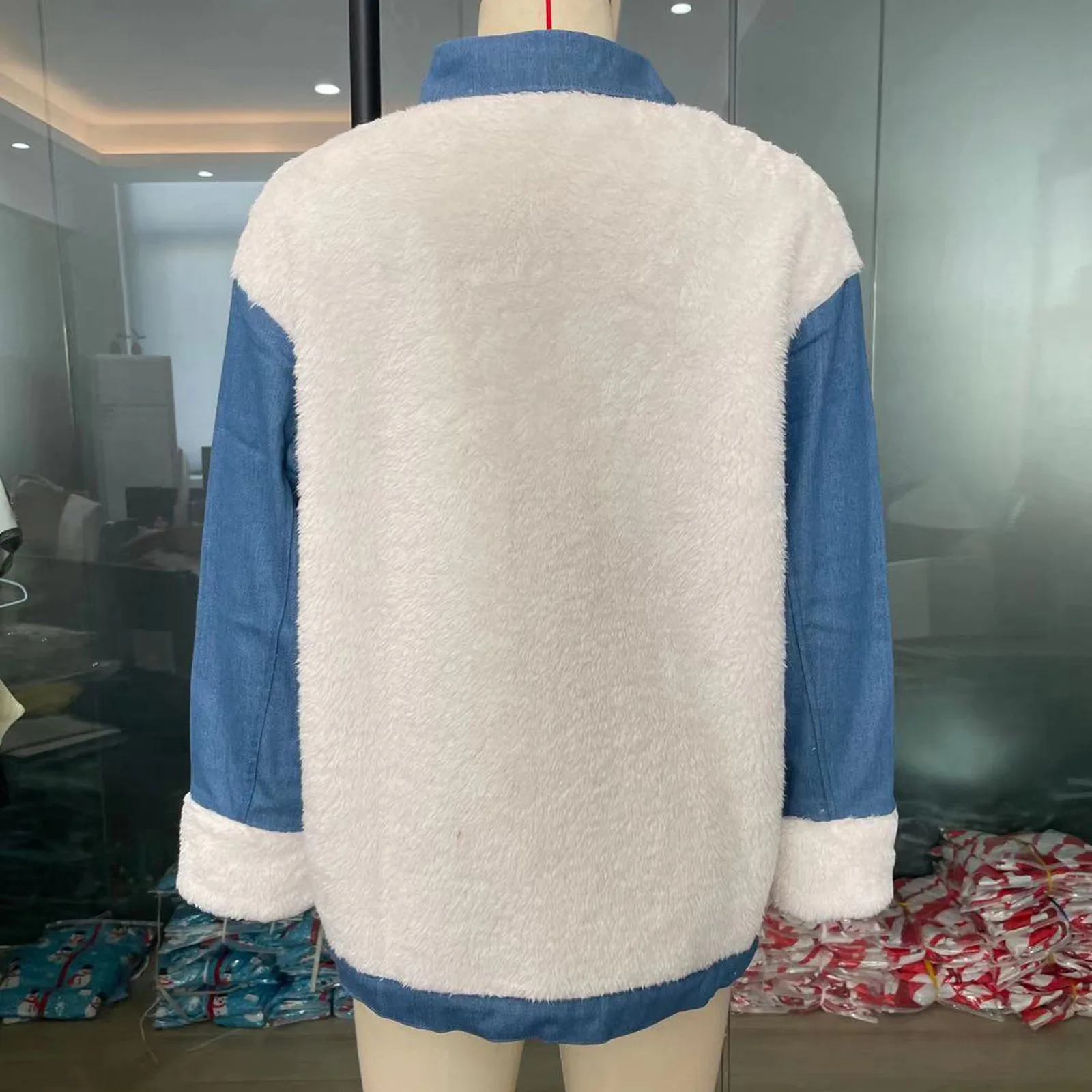 Модный женский Повседневный плюшевый кардиган в стиле пэчворк, верхняя одежда, джинсовая куртка, пальто