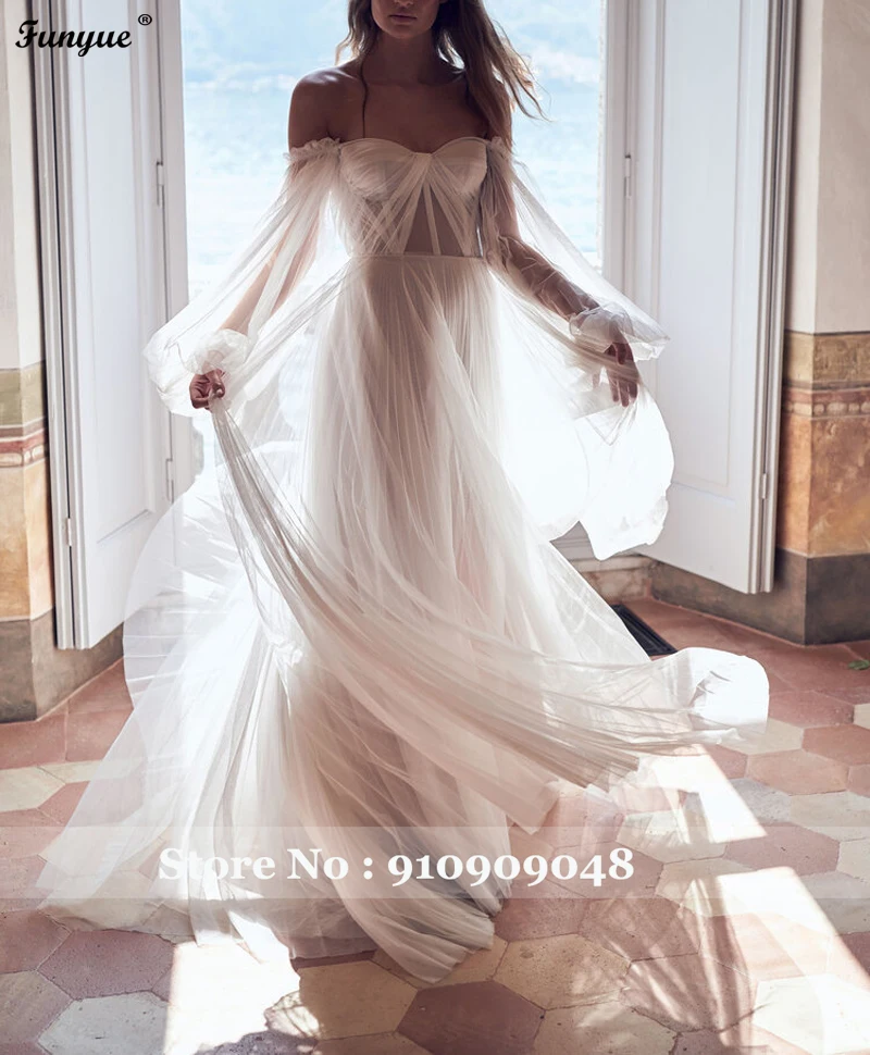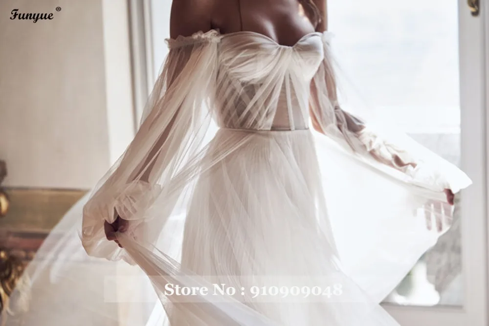 2019 свадебное платье с открытыми плечами, с длинным рукавом, с кру...