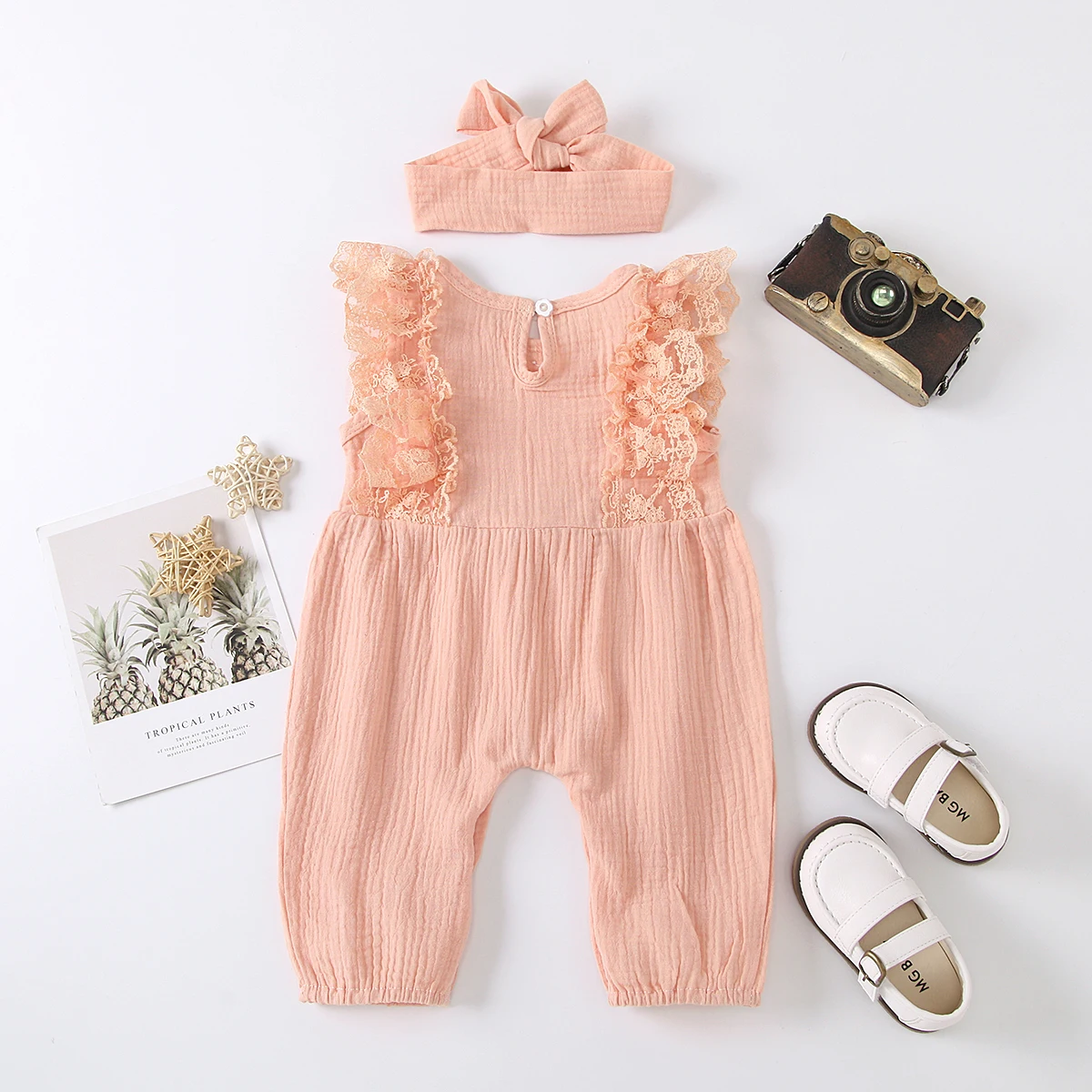 Комбинезон детский из хлопка и льна, без рукавов, розовыйбелыйфиолетовыйзеленыйжелтый