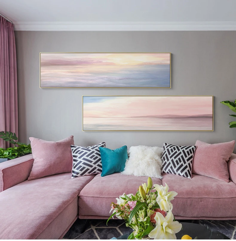 Настенные постеры и принты розового неба и озера в скандинавском ст...