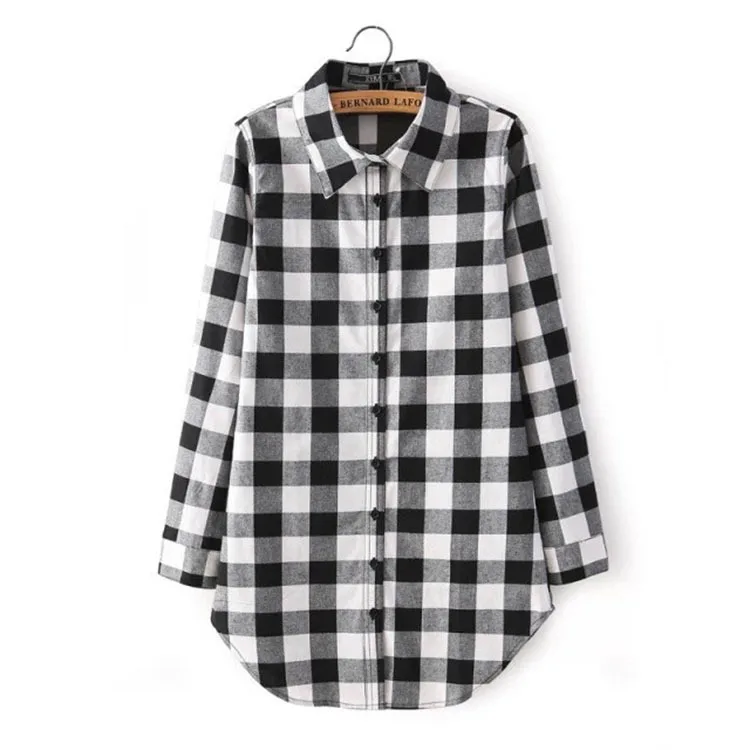 Женские рубашки в клетку с длинным рукавом, Большие Повседневная Дл...