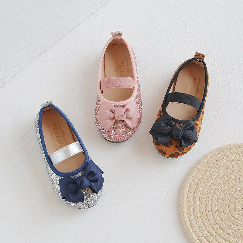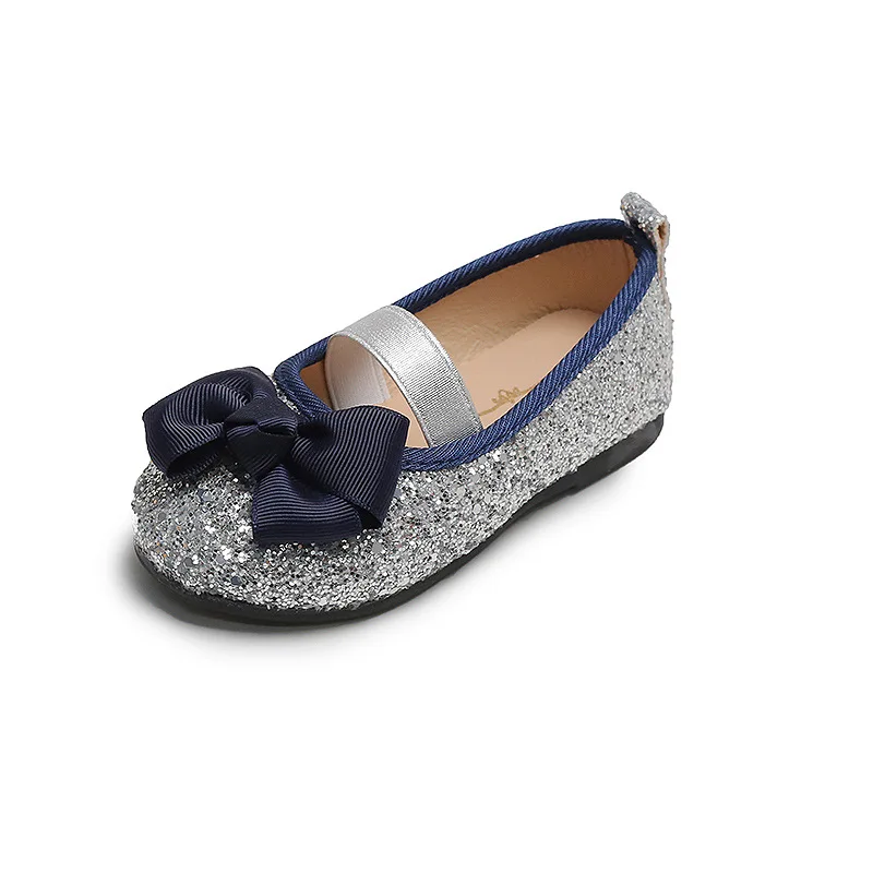 Детская кожаная обувь для девочек блестящая ткань с бантом детское платье на плоской подошве для свадебной вечеринки принцессы с закрытым бантом