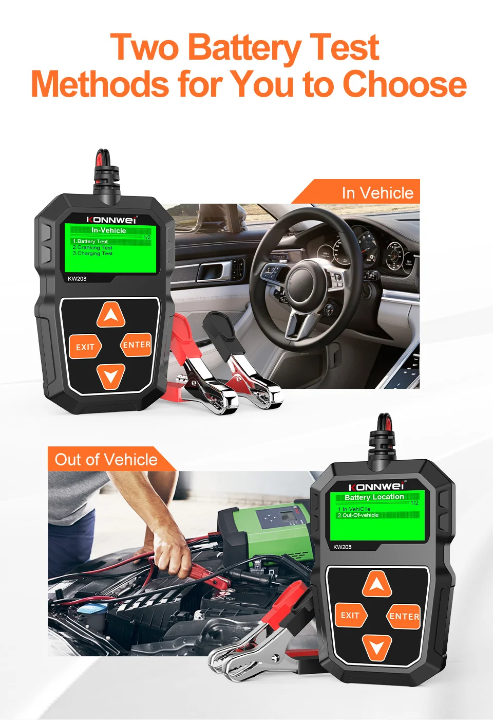 KONNWE kw208 battery tester:suppport 100 to 2000 CCA