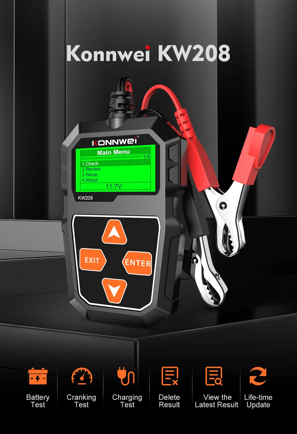 KONNWEI KW208 автомобиля Батарея Тесты er Зарядное устройство анализатор 12V 2000CCA Напряжение Батарея Тесты автомобиля Батарея Тесты er зарядки Cricut инструмент загрузки