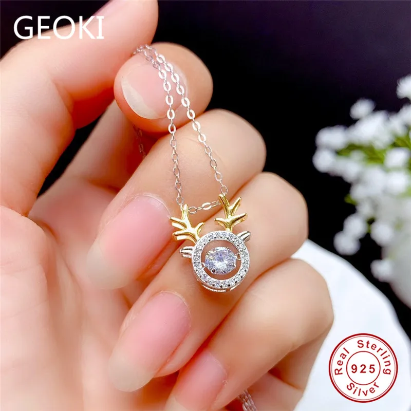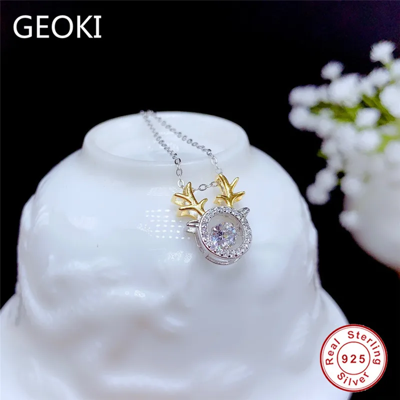 Ожерелье Geoki из стерлингового серебра 925 пробы с бриллиантом, прекрасный вырез, 0,5 карат, цвет D, VVS1 Муассанит, позолоченные ожерелья с рогами 18K
