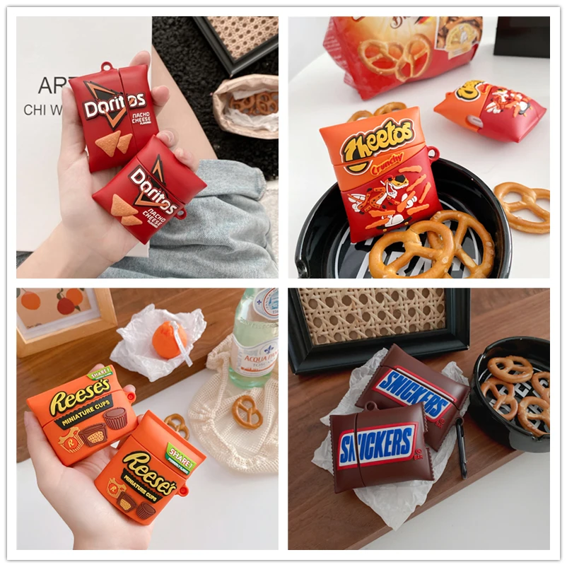 3D производства картофельных чипсов типа забавная силиконовая подставка для наушников чехол для переноски 1 2 pro 3 Невероятно милые домашние тапочки печенья Беспроводной Bluetooth Pritective корпус с крышкой
