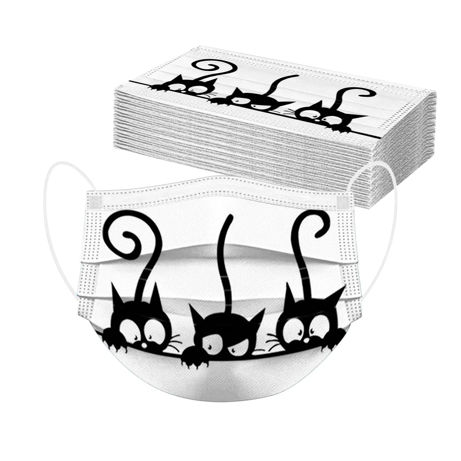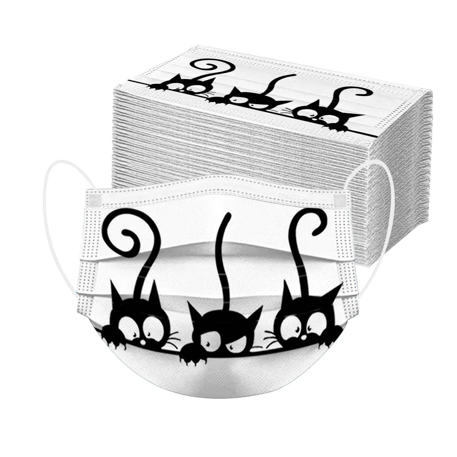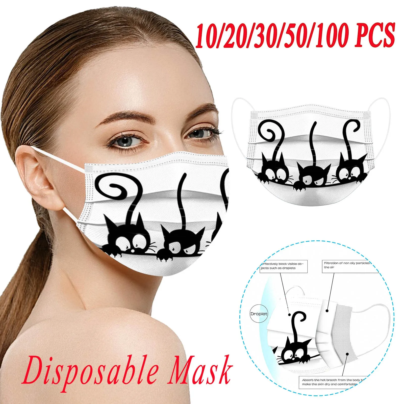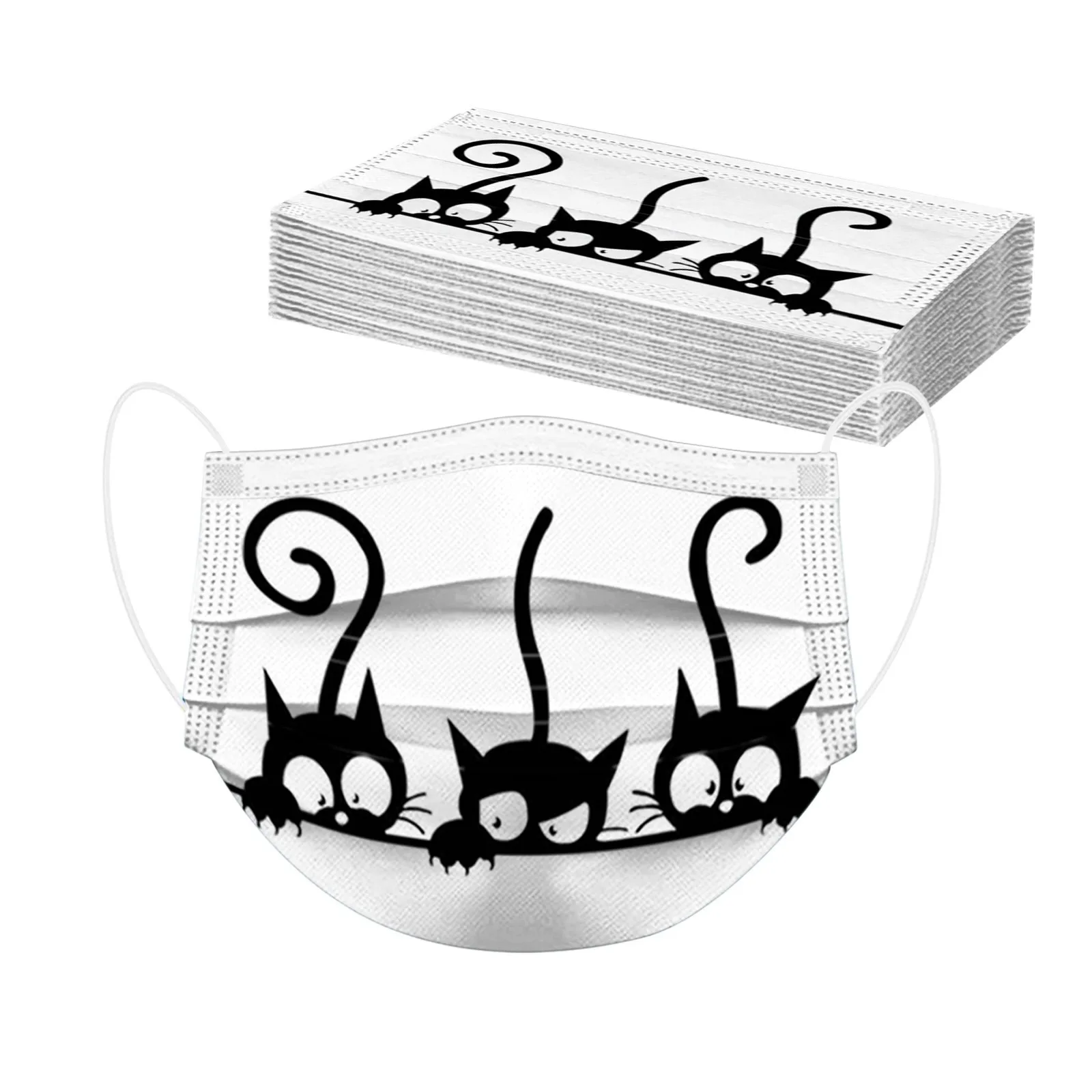 10/20/30/50/100 шт взрослые кошки принты дышащая 3-слойная одноразовая маска