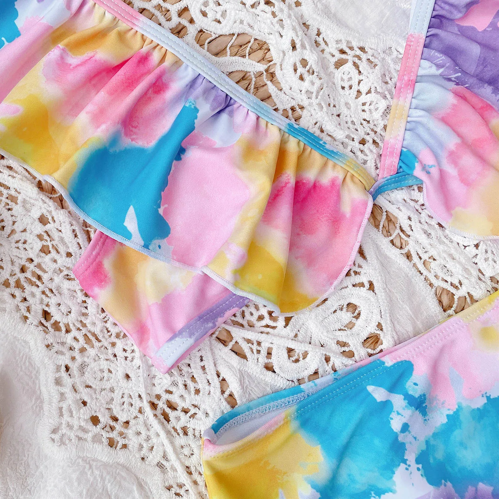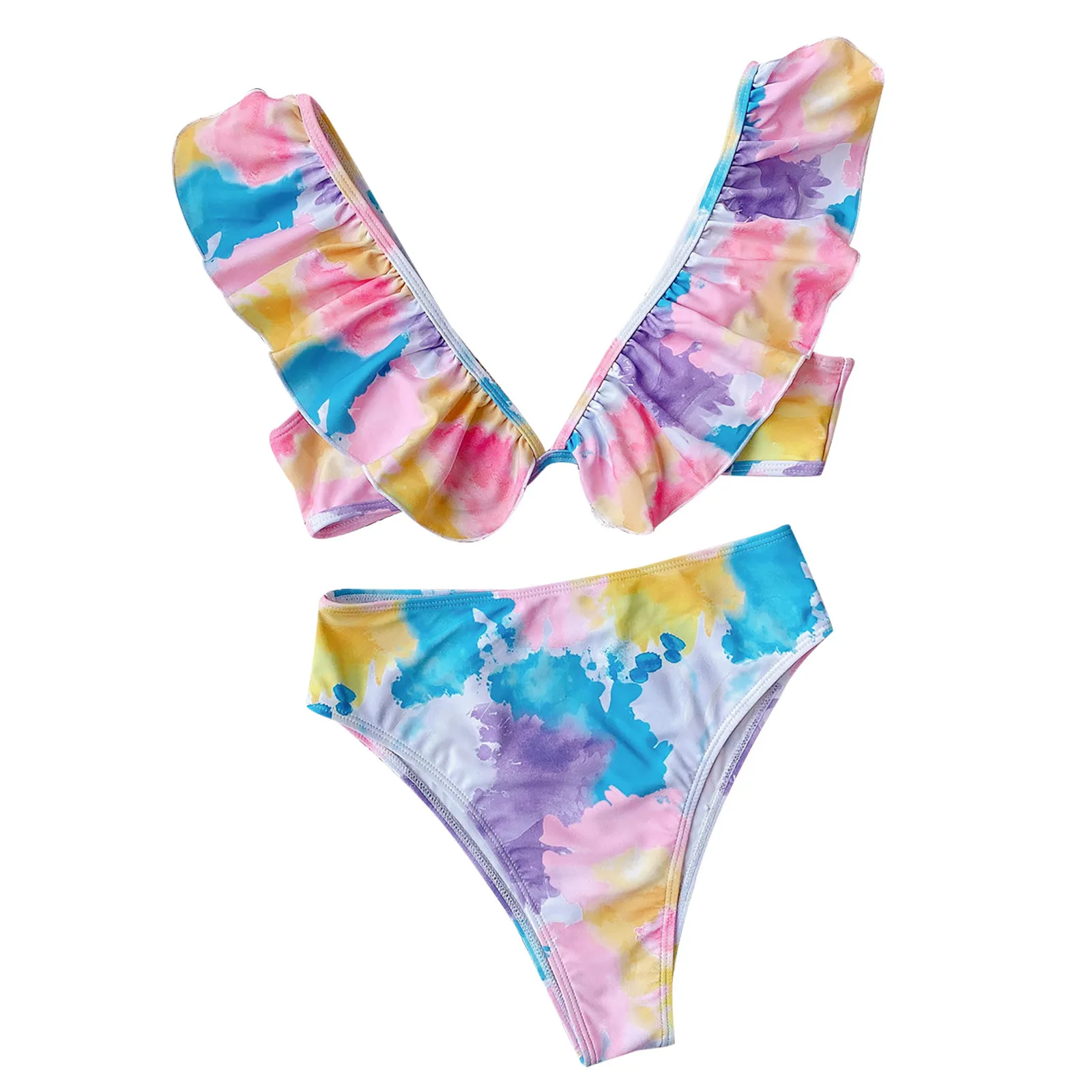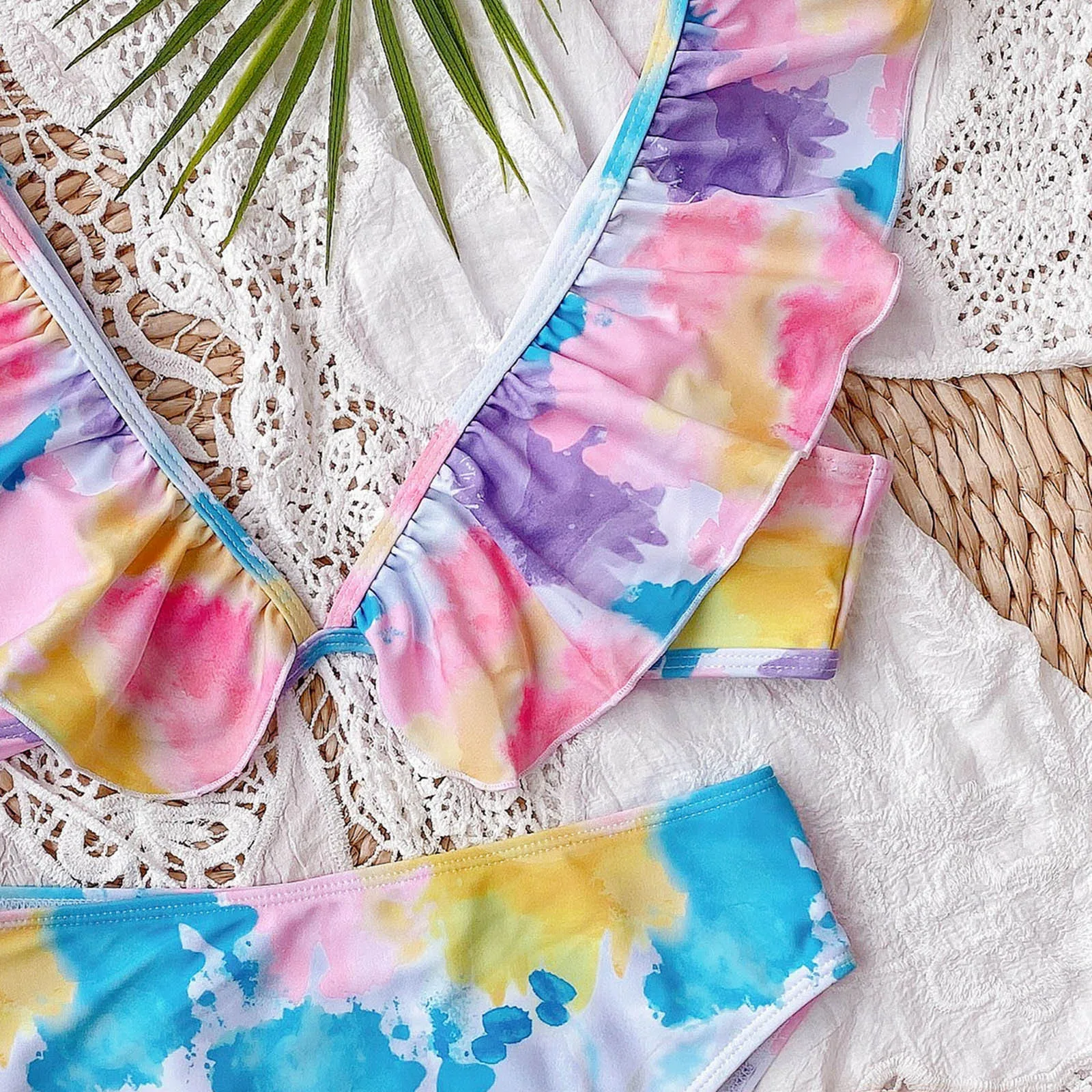 Комплект бикини женский, с принтом тай-дай, с рюшами, пуш-ап, купальный костюм, пляжная одежда, 2021, прекрасные бикини