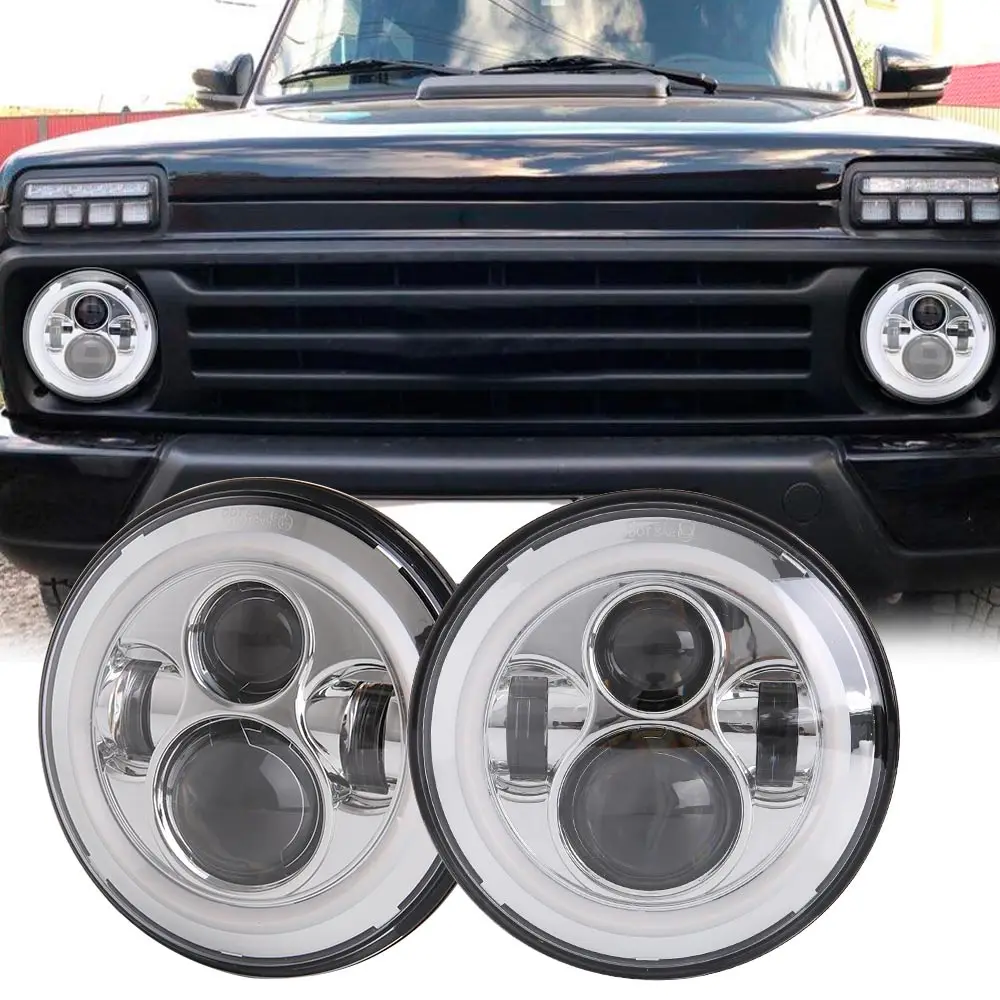 Ходовые огни 40 Вт60 Вт75 Вт80 Вт90 Вт Автомобильные светодиодные 7-дюймовые автомобильные аксессуары ангельские глазки H4 светодиодные фары для Лада Нива 4X4 УАЗ Хантер Хаммер