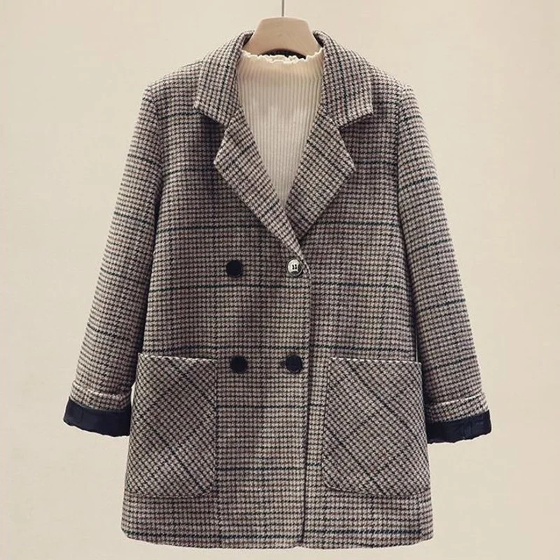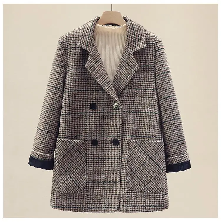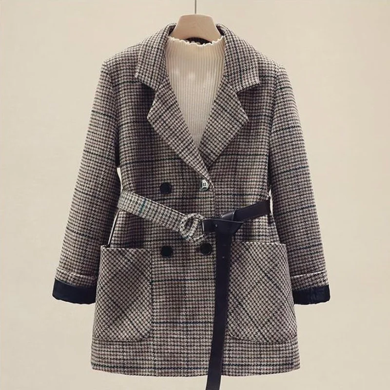 Клетчатое пальто, шерстяная одежда, женская теплая куртка, Женская ...