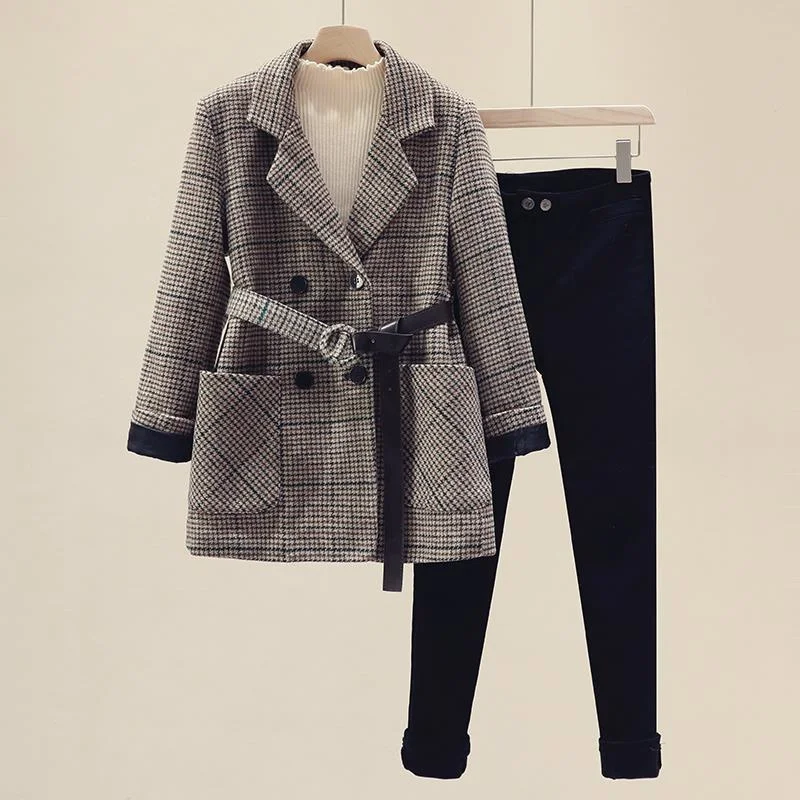 Женский блейзер с поясом, шерстяное пальто с английским воротником,...