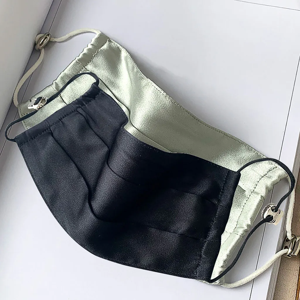 Атласная черная маска для рта, 2 шт., летняя и двухслойная эластичн...