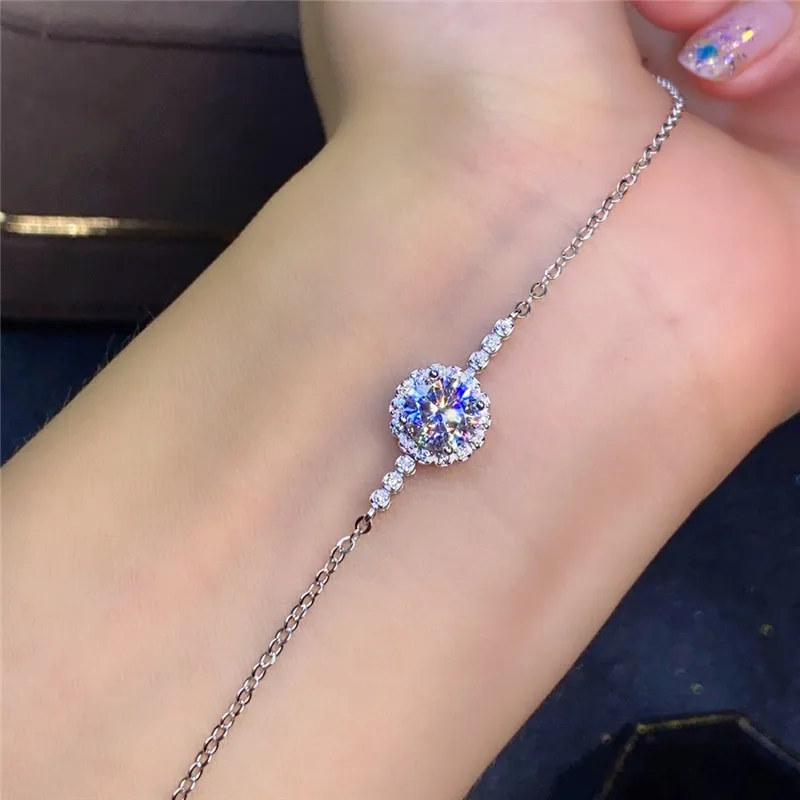 Браслет-цепочка из серебра 925 пробы с круглым бриллиантом огранки 1 карат и муассанитом