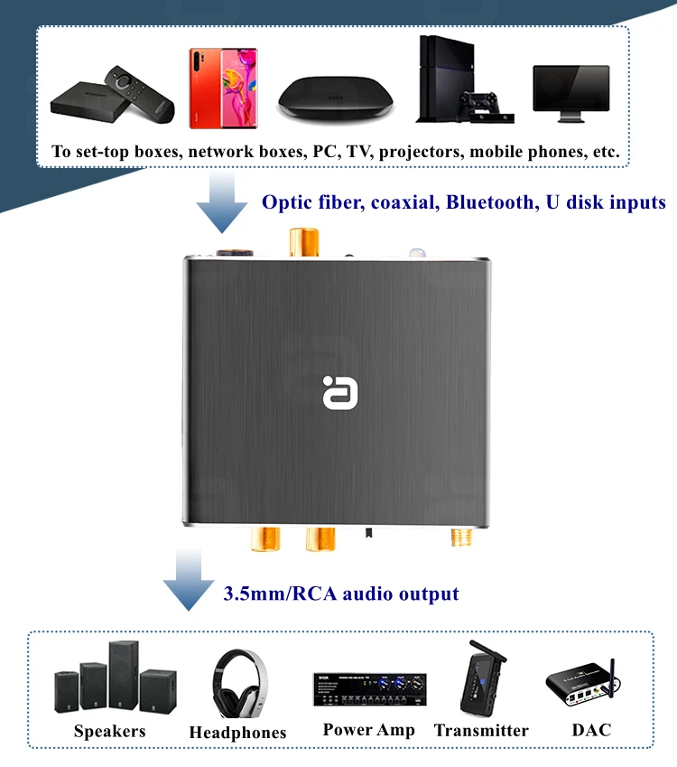 Bluetooth 5,0 приемник беспроводной DAC с пультом дистанционного управления подключения динамиков усилитель мощности Наслаждайтесь караоке Преимущества:-Bluetooth-приемник-Поддержка u-диска-Оптоволоконный вход-Коаксиальный вход-Поддержка Микрофона-Чип Bluetooth 5,0-Беспроводная передача 20 м/65,6 футов-Цифровое и аналоговое преобразование-С пультом дистанционного управления-Двухканальный выход Особенности:-Bluetooth 5,0 аудио приемник DAC-Поддержка u-диска для воспроизведения музыки. Поддержка: MP3, WAV, WMA, APE, FLAC, SBC и других аудио форматов-Поддержка микрофона для использования в караоке-Пульт дистанционного управления обеспечивает дистанционное управление-Двухсторонние выходы-Оптическое волокно, коаксиальный, u-диск, Bluetooth входы: для телеприставки, сетевых коробок, компьютеров, телевизоров, проекторов, мобильных телефонов и т. Д.-Конвертировать оптический коаксиальный цифровой сигналов до 3,5 мм/RCA и выход с усилителями и акустическими системами-Bluetooth 5,0 беспроводной прием ультра-Дальняя передача Расстояние 20 м/65,6 футов-Поддержка дистанционного управления: воспроизведение/пауза, Предыдущая песня, следующая песня-Поддержка входного микрофона, вы можете наслаждаться караоке дома-Мощный чип работает стабильно и надежно: высокоинтегрированный чип, Bluetooth, USB, преобразование и передача цифрового сигнала обычным динамикам для воспроизведения, обновления и использования обычных динамиков, И купить ключ, чтобы насладиться удобством различных технологий-Регулируемые звуковые эффекты: Эхо, рок, классика, джаз, кантри и поп-Варианты применения: домашний кинотеатр, музыка на u-диске, домашний караоке, Мобильная Музыка Посылка включает в себя:-1 комплект приемника Bluetooth 5,0 Примечание:-Он собран.-U-диск и другие предметы на фото не включены, только для демонстрационных целей. Спасибо за понимание!