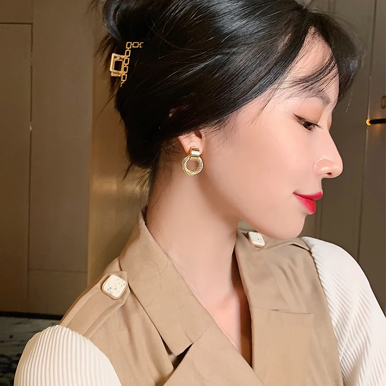 Серьги-подвески маленькие металлические золотистые в стиле ретро, 2020 г.
