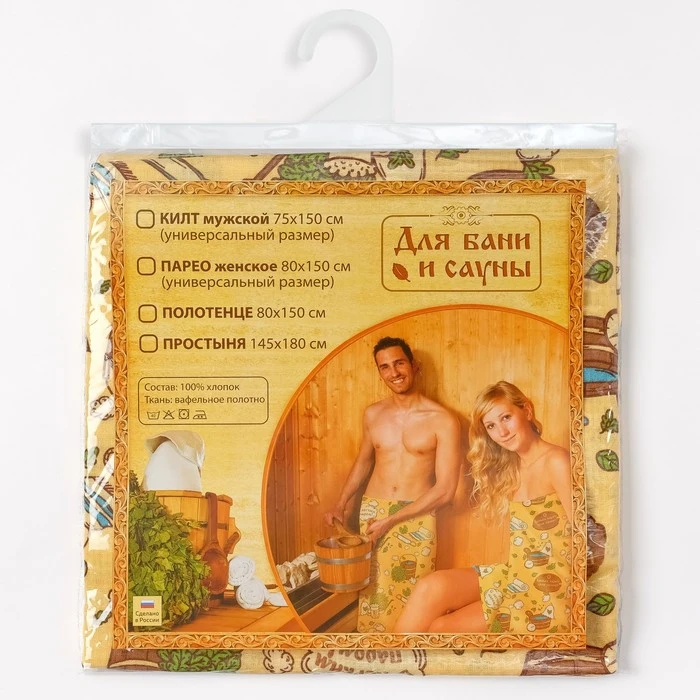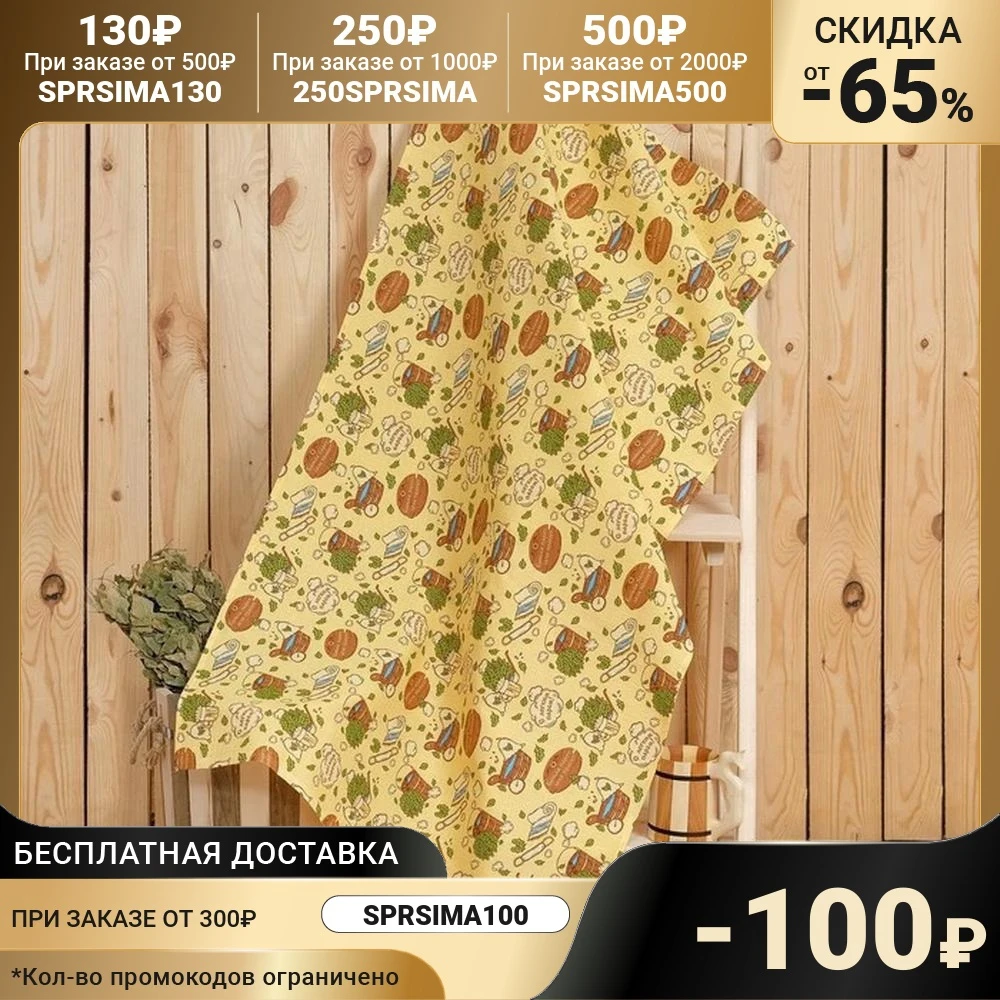 Полотенце для бани "С легким паром" 80х 150 см, хлопок вафельное полотно 1346681