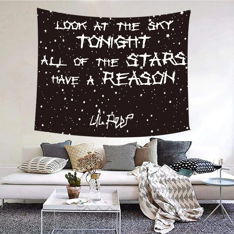Настенный подвесной гобелен в стиле хиппи, гобелен, расшитый звездами с надписью Moon, Настенный Ковер, тканевый фон для потолка, Декор для дома, 95x73 см, черное небо