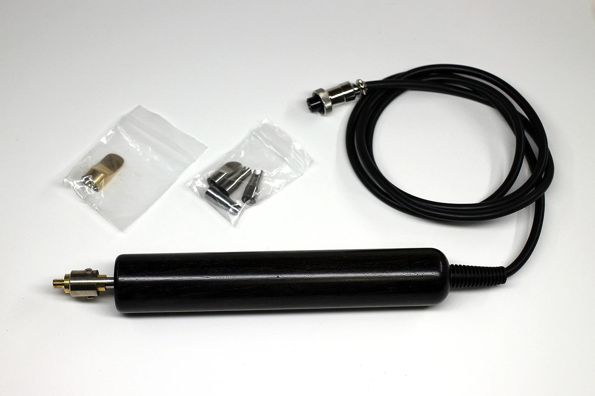 Сам по себе товар хороший, сделан качественно. Но цена завышена раза в 2 минимум! Фактически это переделанная ручка от паяльной станции, на которую насадили деревянный корпус и вместо фиксатора нагревательного элемента привинтили то, что вы видите торчащим из неё. Сам же нагревательный элемент так же от паяльной станции, у которого просто сточили жало. Цена такой ручки 700 рублей здесь на Али, а нагревательного элемента T12 всего 250 рублей (всё с бесплатной доставкой).