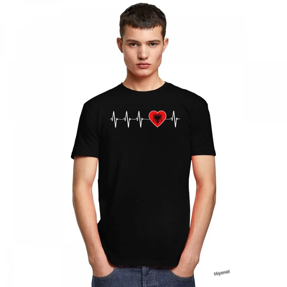 Уникальная мужская футболка с албанским флагом Албании, футболка с коротким рукавом и круглым вырезом, хлопковая Футболка с принтом, топы, приталенная модная одежда