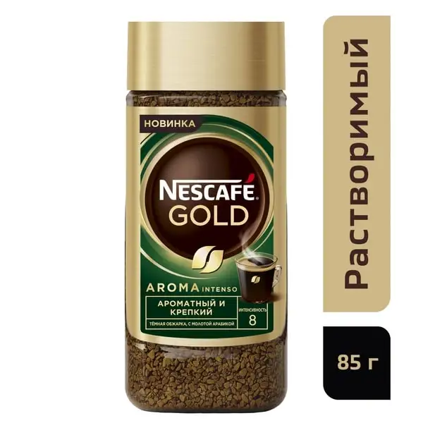 NESCAFÉ GOLD Aroma Intenso 100% натуральный растворимый сублимированный кофе с добавлением нутарального жареного молотого. Темная обжарка с молотой Арабикой.