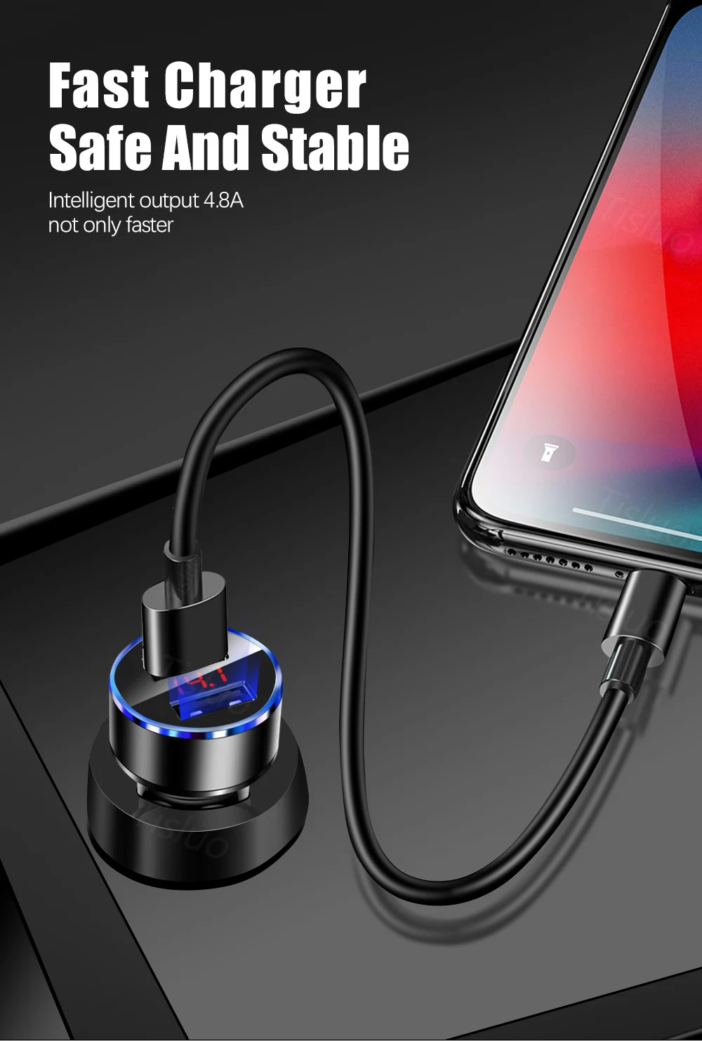 Function 3LED Display Car Charger for iPhone