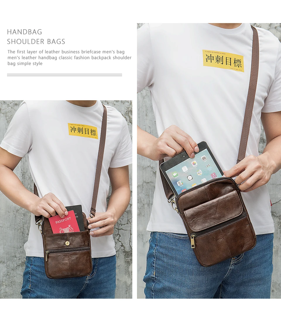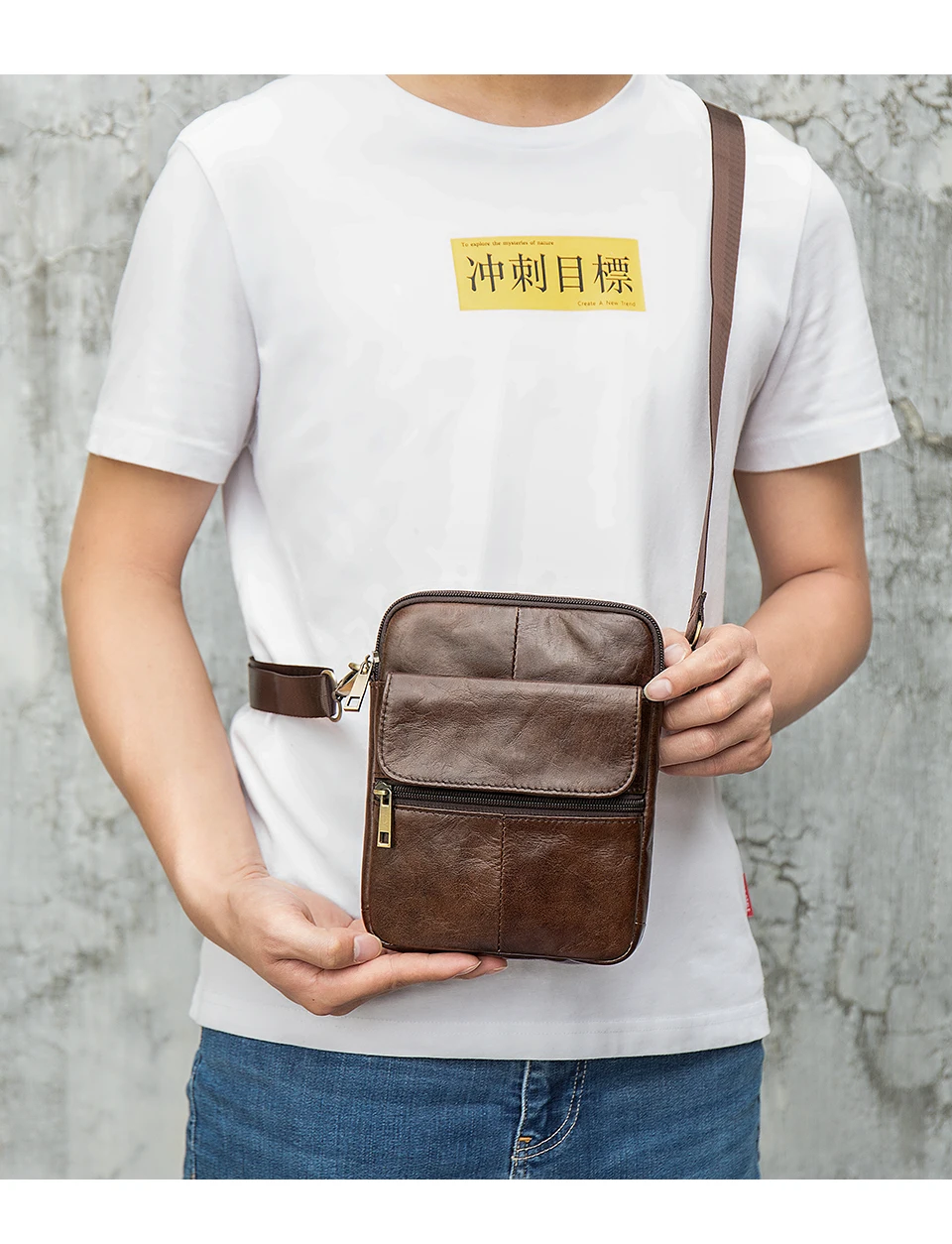 Маленькая сумка-мессенджер через плечо для мужчин, сумка из натурал...