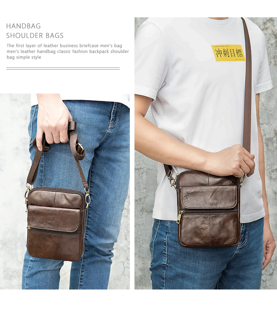 Сумка кросс-боди мужская из натуральной воловьей кожи, маленький мессенджер через плечо для телефона, популярный винтажный саквояж, хит 2020