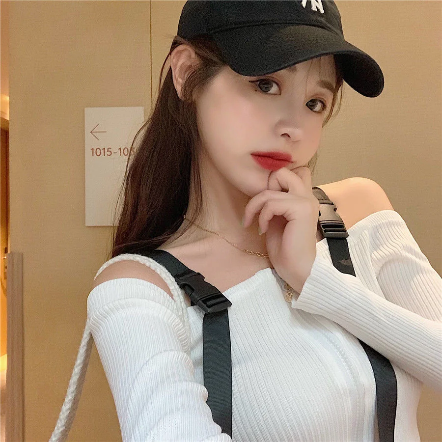 Женские футболки Осень персонализированные футболка с бретельками женская обувь с ремешком на пряжке с длинным рукавом для девочек топы с длинными рукавами, топ, женские футболки